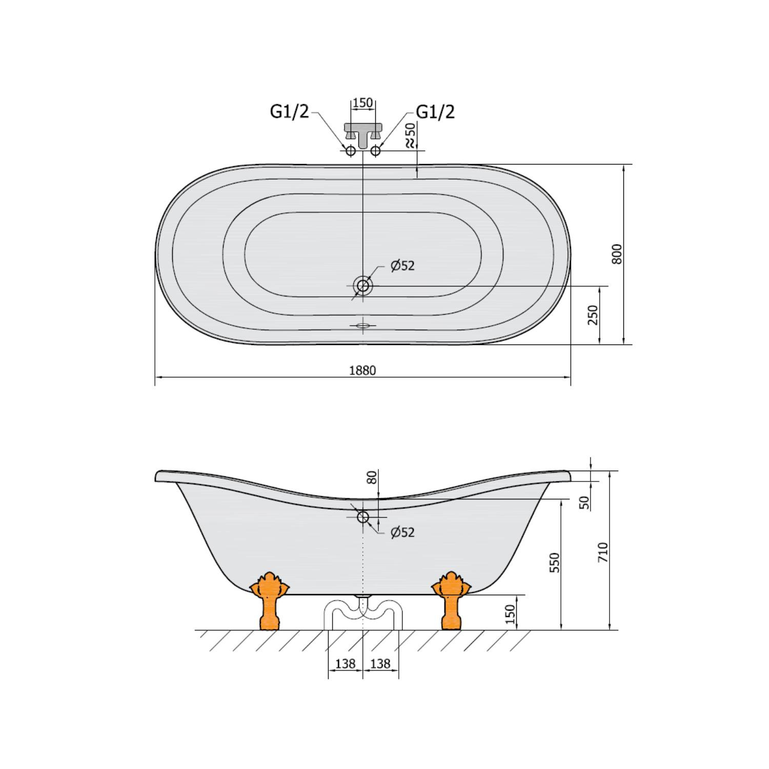De witte poten maken dit vrijstaande bad echt af. Badpoten hoeft u er dus niet meer bij te bestellen. U heeft nog wel een afvoerplug nodig en een badafvoer.
