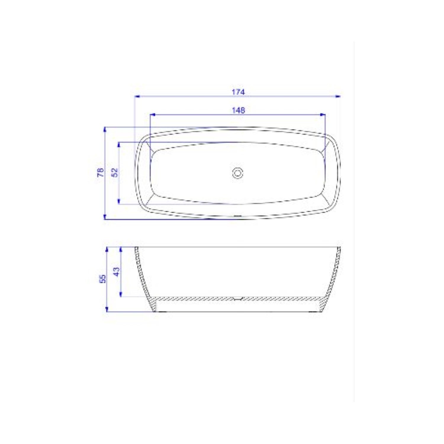 Het ligbad en gemaakt van gegoten marmer. Mineraal marmer is een gegoten substantie waardoor er strakke vormen mogelijk zijn. Het wordt afgeraden haarverf en andere sterke kleurstoffen in dit bad te gebruiken. Eventuele krassen die na verloop van tijd ontstaan zijn er makkelijk uit te poetsen met een polijstmiddel. Dankzij het onderhoudsvriendelijke karakter van gegoten marmer gaat het bad een groot aantal jaren mee.