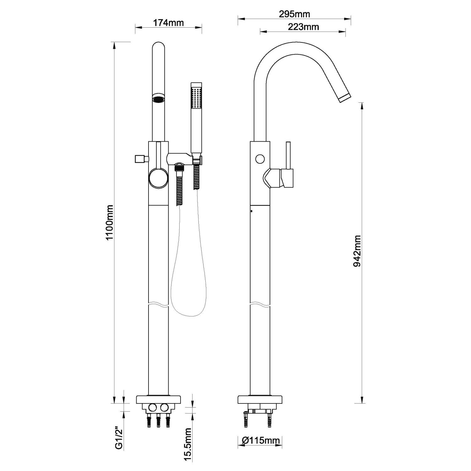 Deze vrijstaande badmengkraan staat garant voor kwaliteit en design. Het betreft een complete set bestaande uit een badkraan, een handdouche en een doucheslang. Alle elementen van deze set zijn afgewerkt in de kleur geborsteld koper, wat een luxe uitstraling aan uw badkamer geeft.