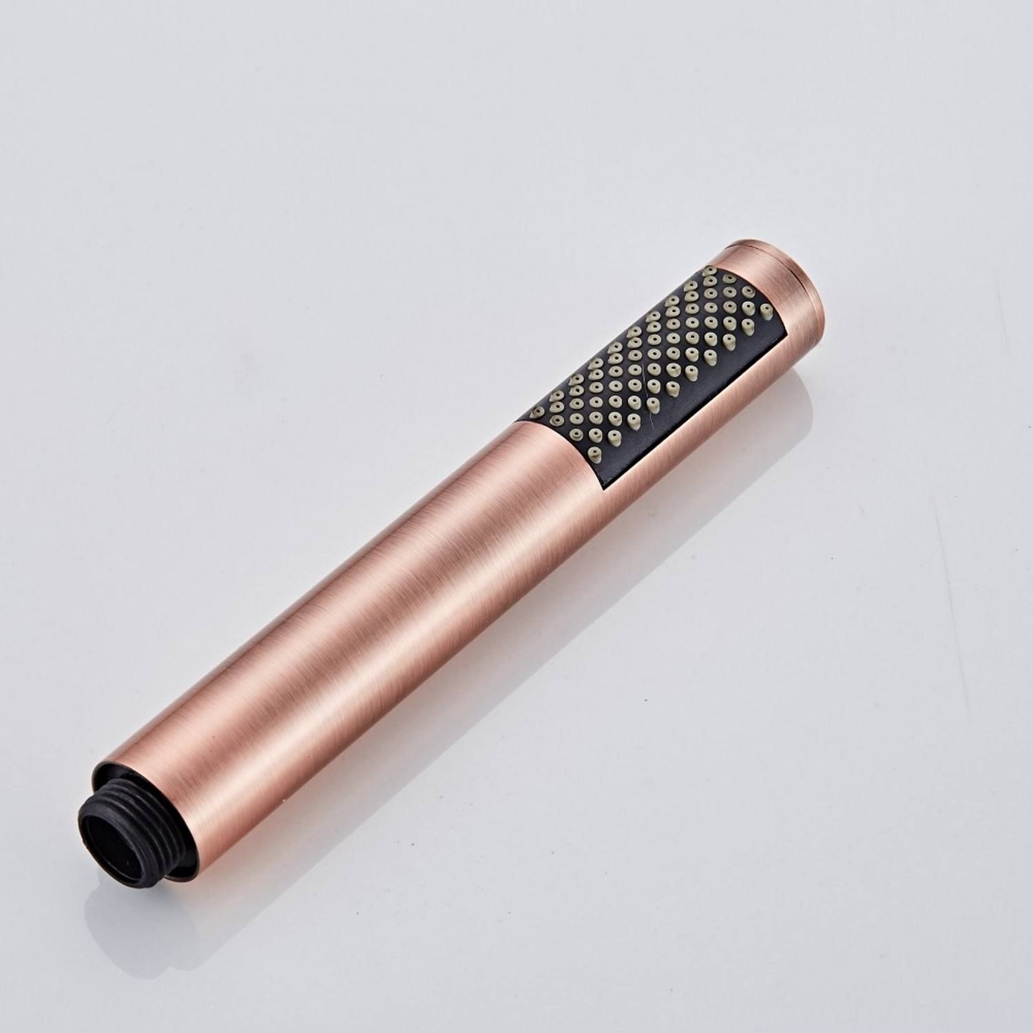 Bij een vrijstaande badkraan hoort een handdouche. Deze is, net als de badkraan, gemaakt van messing. Een stevig materiaal wat zeer goed in natte ruimtes gebruikt kan worden. De handdouche vorm is gelijk als de vorm van de badkraan, zeer elegant en stijlvol. De handdouche is voorzien van siliconen sproeigaatjes. Deze zijn eenvoudig te ontkalken.