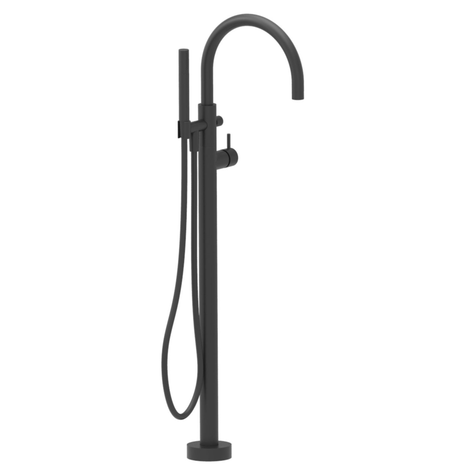 Bij de vrijstaande badkraan wordt een handdouche meegeleverd inclusief een doucheslang van 150 cm. De handdouche is netzoals de kraan gegalvaniseerd. De handdouche is recht van vorm en de kop loopt door vanuit het handvat. De sproeikop is voorzien van gaatjes, zeer elegant,strak en stijlvol.