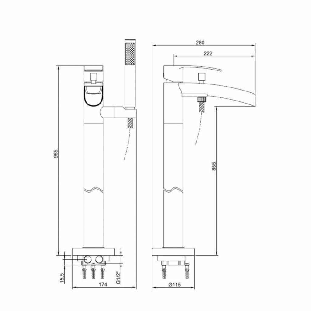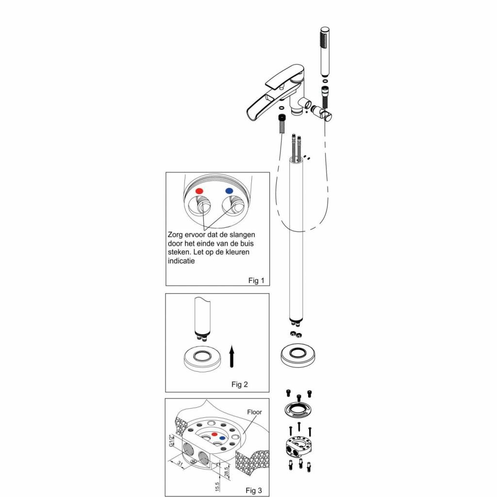 De vrijstaande badmengkraan bevat een mooie handdouche waarvan het handvat doorloopt in de sproeikop. De Handdouche bevat een flexibele slang en is erg handig om het bad schoon te maken of om uzelf aftespoelen na het baden.