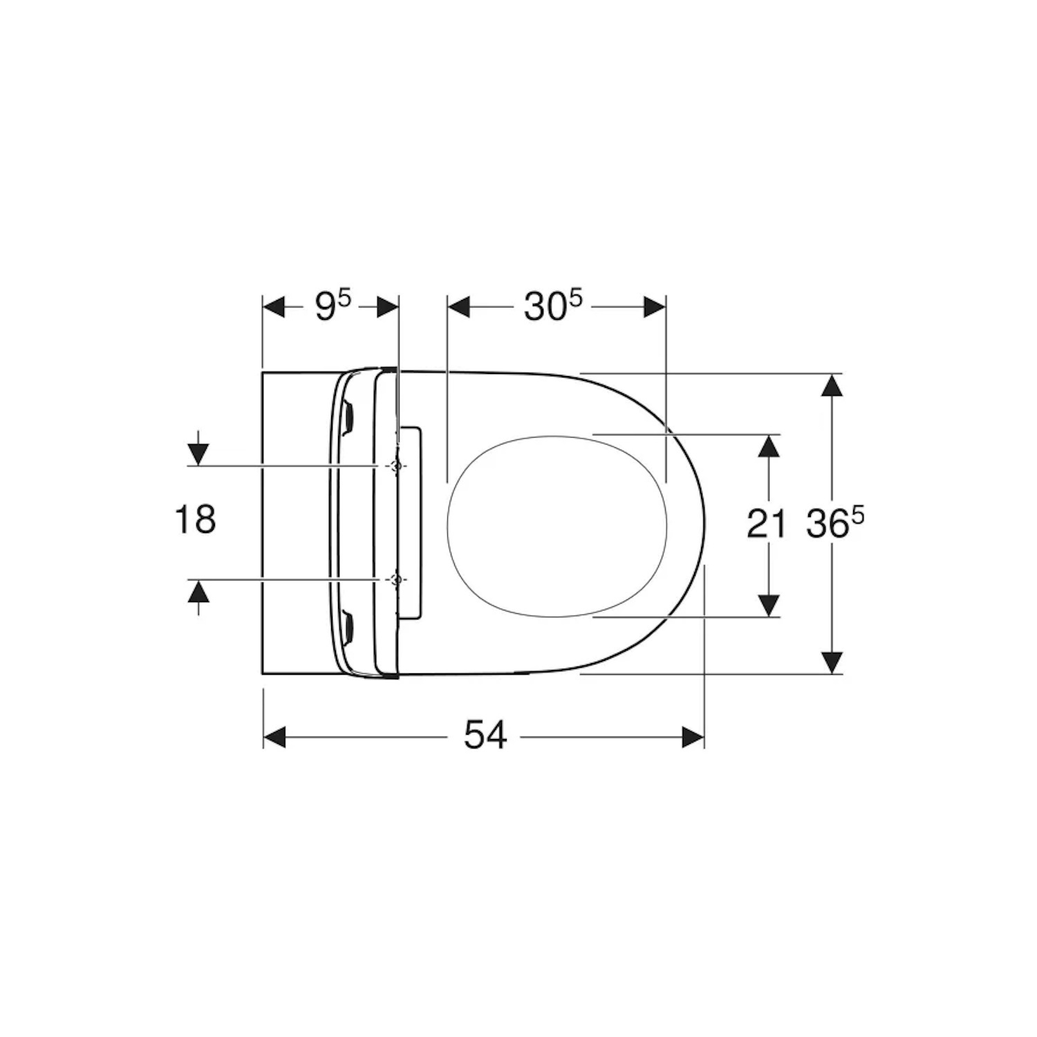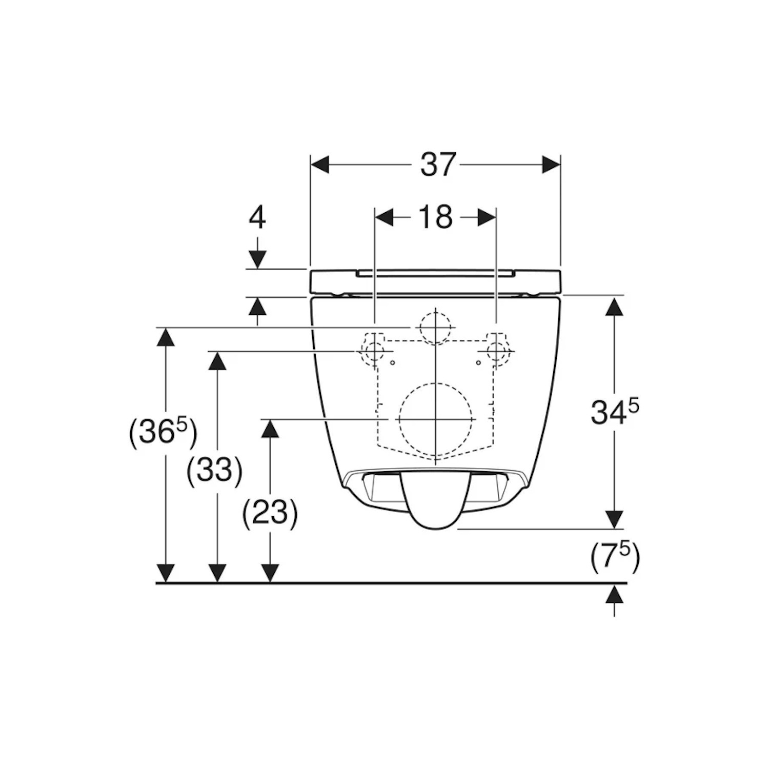 Het toilet heeft een hoogte van 34,5 cm en heeft een breedte van 37 cm. De diepte van het toilet is 54 cm en de HoH bevestiging is 18 cm