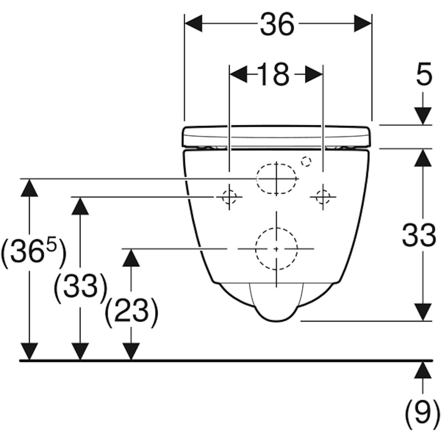 Het toilet is wand hangend en heeft een achter aansluiting. Het toilet is 36 cm hoog, 37.8 cm breed en 49 cm diep en wordt geleverd inclusief zitting. Het toilet heeft een ophang H.O.H. afstand van 18 cm.