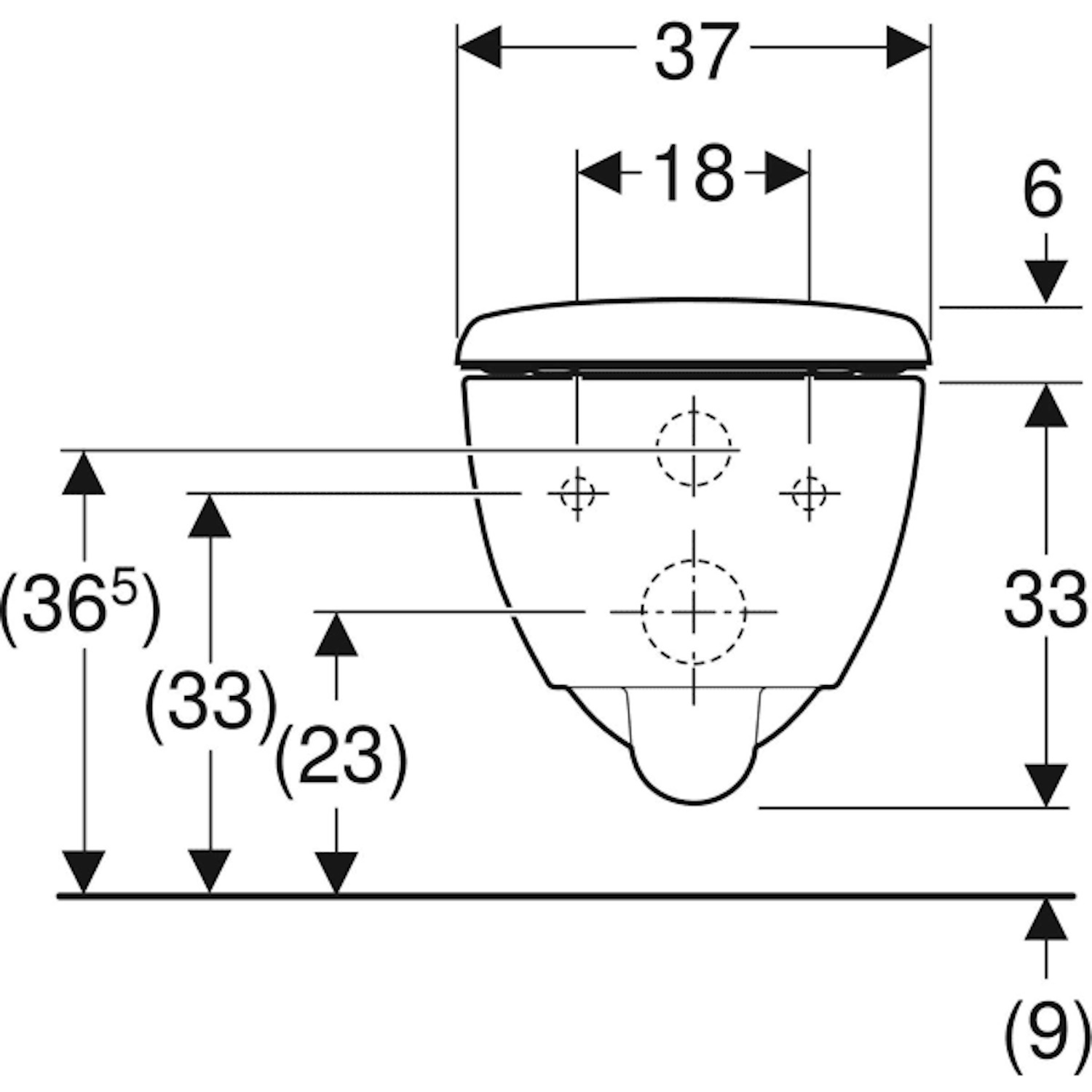 Het toilet is wand hangend en heeft een achter aansluiting. Het toilet is 39 cm hoog, 37 cm breed en 49 cm diep en wordt geleverd inclusief zitting. Het toilet heeft een ophang H.O.H. afstand van 18 cm.