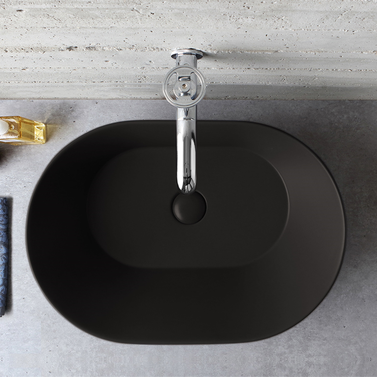 Deze Mees Design opbouw waskom geeft met zijn fraaie mat zwarte uitstraling en unieke vorm een prachtige dimensie aan uw badkamer. Zeker als u de waskom combineert met andere mat zwarte items in uw badkamer. De waskom kent een breedte van 60 cm, diepte van 42 cm en heeft een hoogte van 16.5 cm.