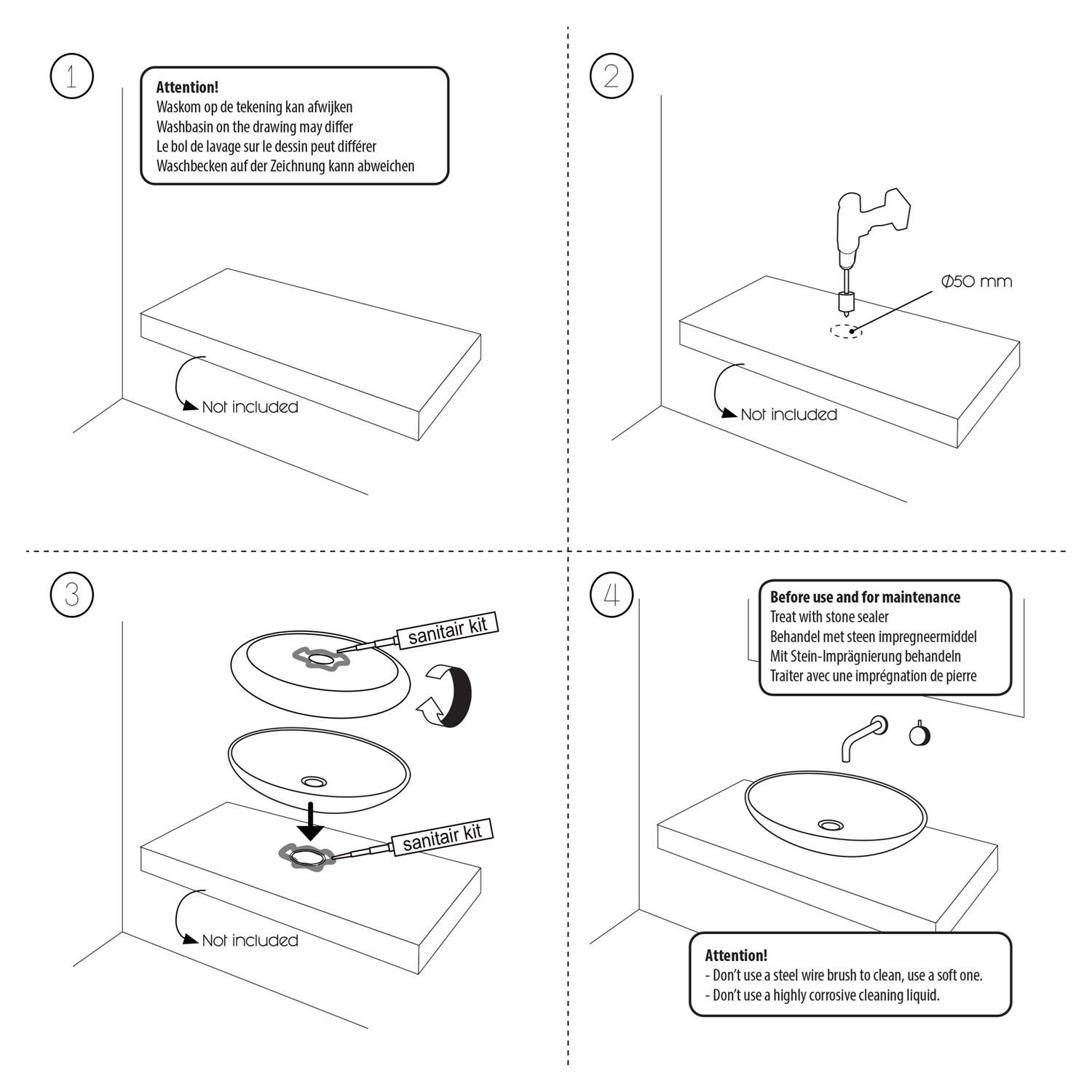 Let op: deze waskom heeft geen overloop of sifon. Deze kunt u hier zelf bij uitzoeken.