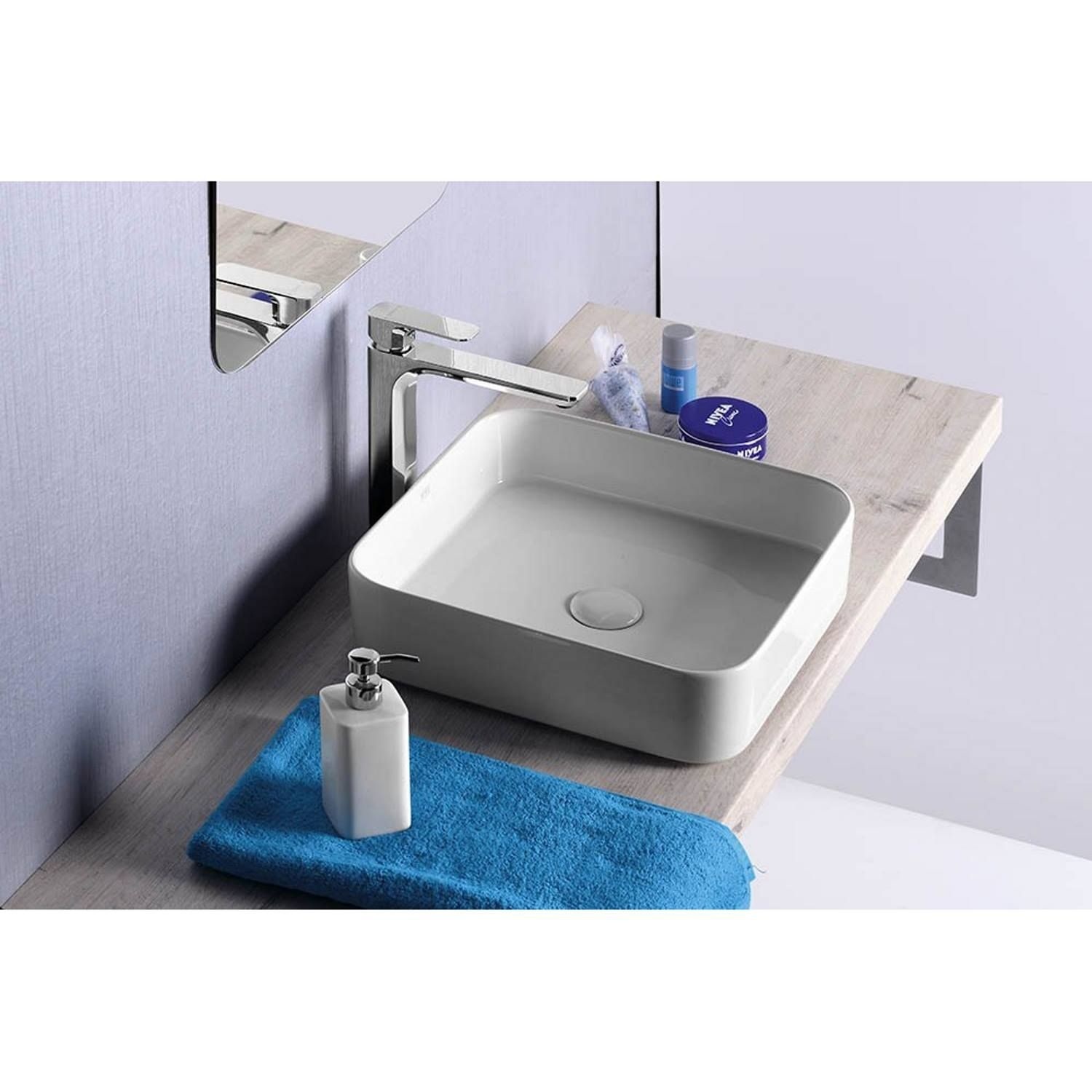 Met deze witte opbouw vierkanten waskom van Sapho geeft u uw badkamer een hippe uitstraling. De keramieken waskom heeft een breedte van 40 cm, een diepte van 40 cm en een hoogte van 11.5 cm.