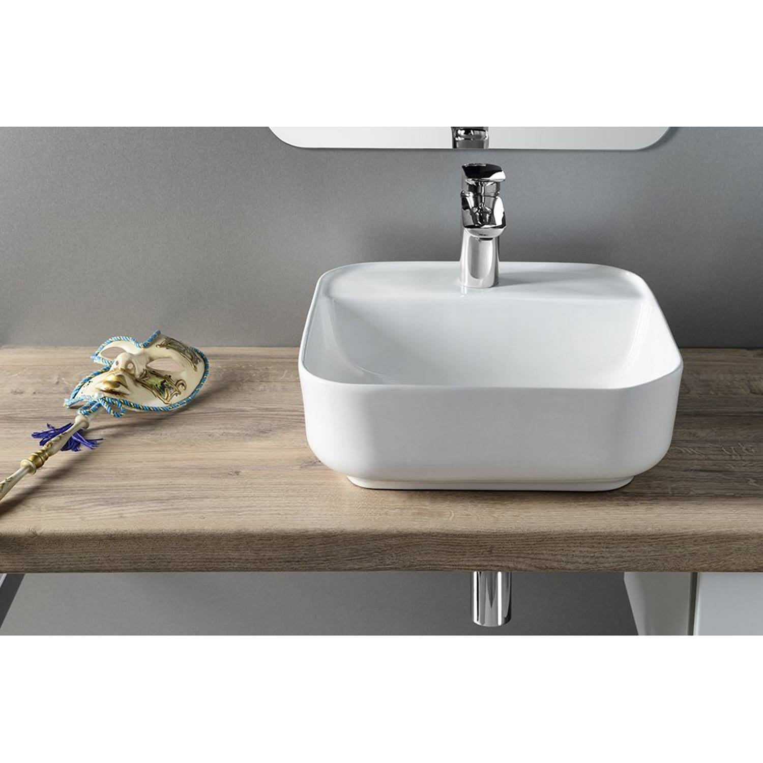 Met deze witte opbouw waskom van Sapho geeft u uw badkamer een hippe uitstraling. De keramieken waskom heeft een vierkant design en heeft de afmetingen breedte 39,5 cm, diepte 39.5 cm en hoogte 14 cm.