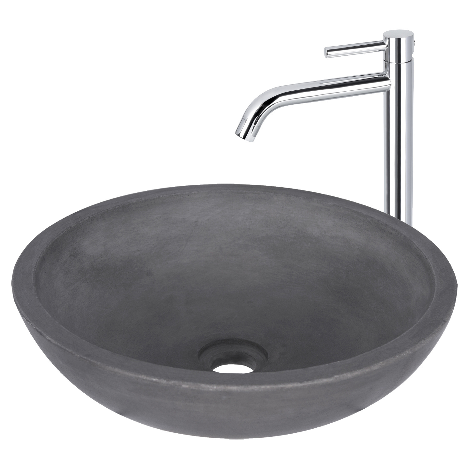 Een prachtige waskom van beton die uw badkamer een stoere uitstraling geeft. Geen standaard materiaal waskom maar van unieke beton van maar liefst 40 cm. U creeert met dit model iets speciaals voor in de badkamer. Ook is de waskom voorzien van een practige opbouw kraan in de kleur chroom. Deze kraan heeft een afmeting van 4.5x17.4x30.6.