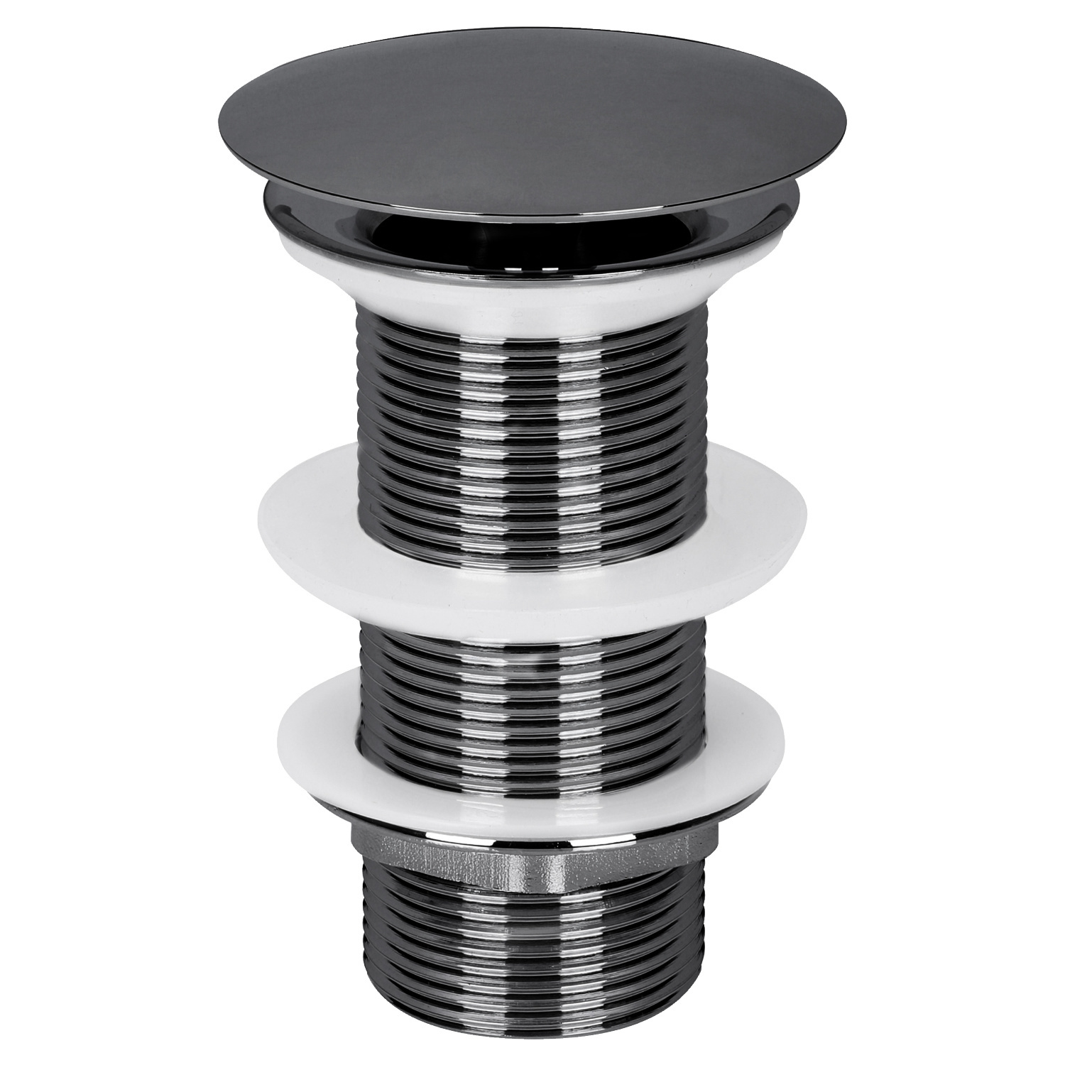 Met deze afvoerplug maakt u het design van uw wastafel helemaal af. Deze plug staat standaard open en wordt niet afgesloten. De plug is gemaakt van messing en afgewerkt in gunmetal . Ook verkrijgbaar in chroom , rood koper, mat chroom, mat zwart, gunmetal.