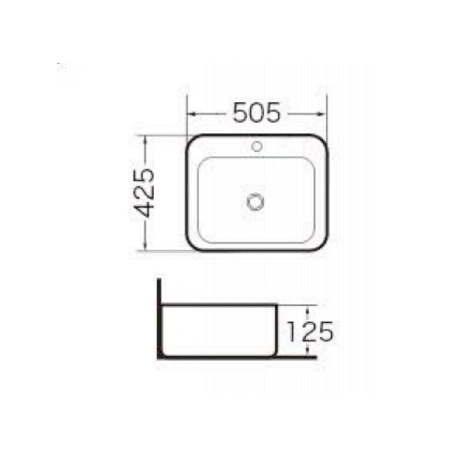De wastafel is 50.5 cm breed, 42.5 cm diep, 12.5 cm hoog en is geschikt voor wandmontage. Verder is de wastafel voorzien van een overloop en een kraangat.