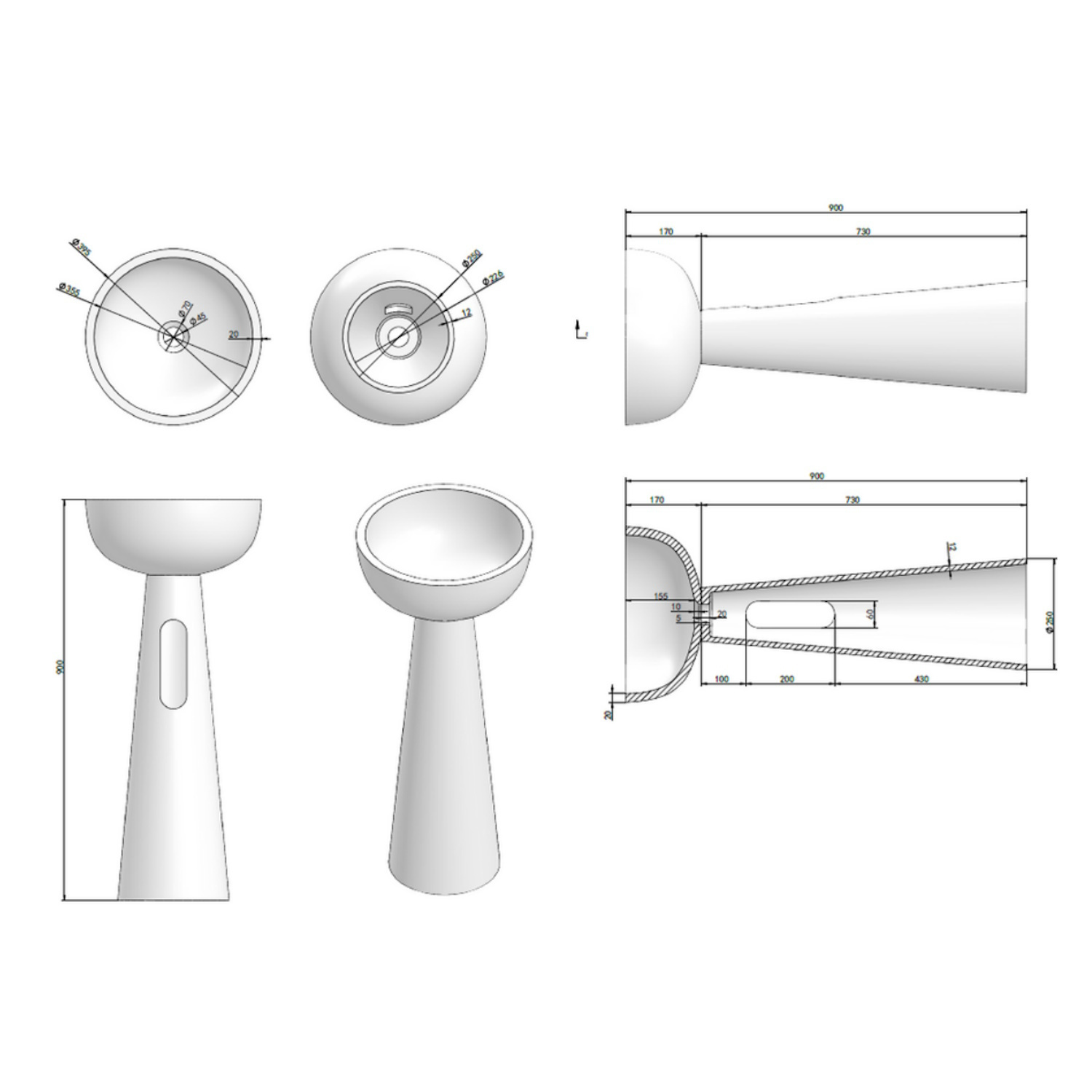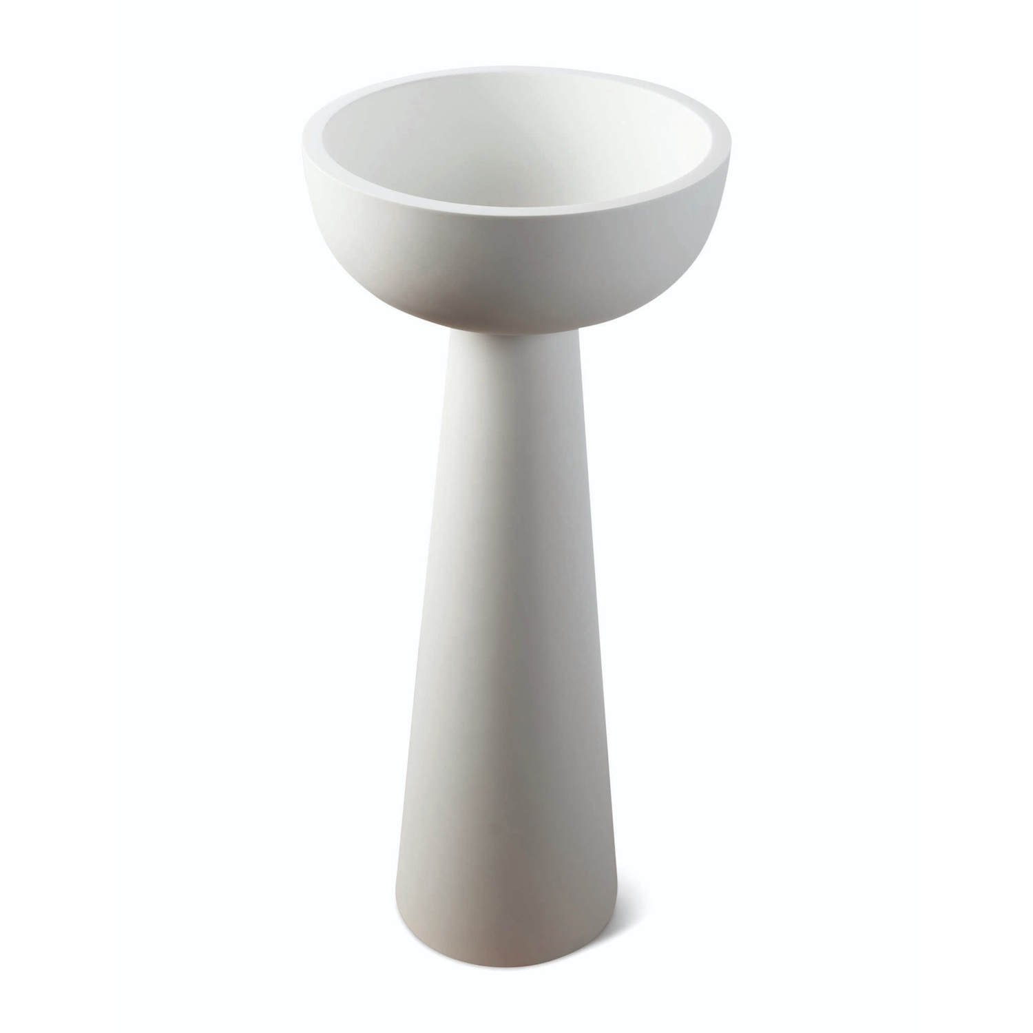 Met deze staande wastafel van Luca Sanitair heeft u sowieso een blikvanger in de badkamer of toiletruimte. Deze wastafel heeft een spitse pilaarvorm die staat op de grond. De ronde wasbak heeft een hoge rand met een diepte van 17 cm, zo heeft u geen last van opspattend water. De wastafel is gemaakt van solid surface. Dit robuuste materiaal is een composiet van mineralen en harzen. Het is niet poreus en zeer makkelijk schoon te maken.