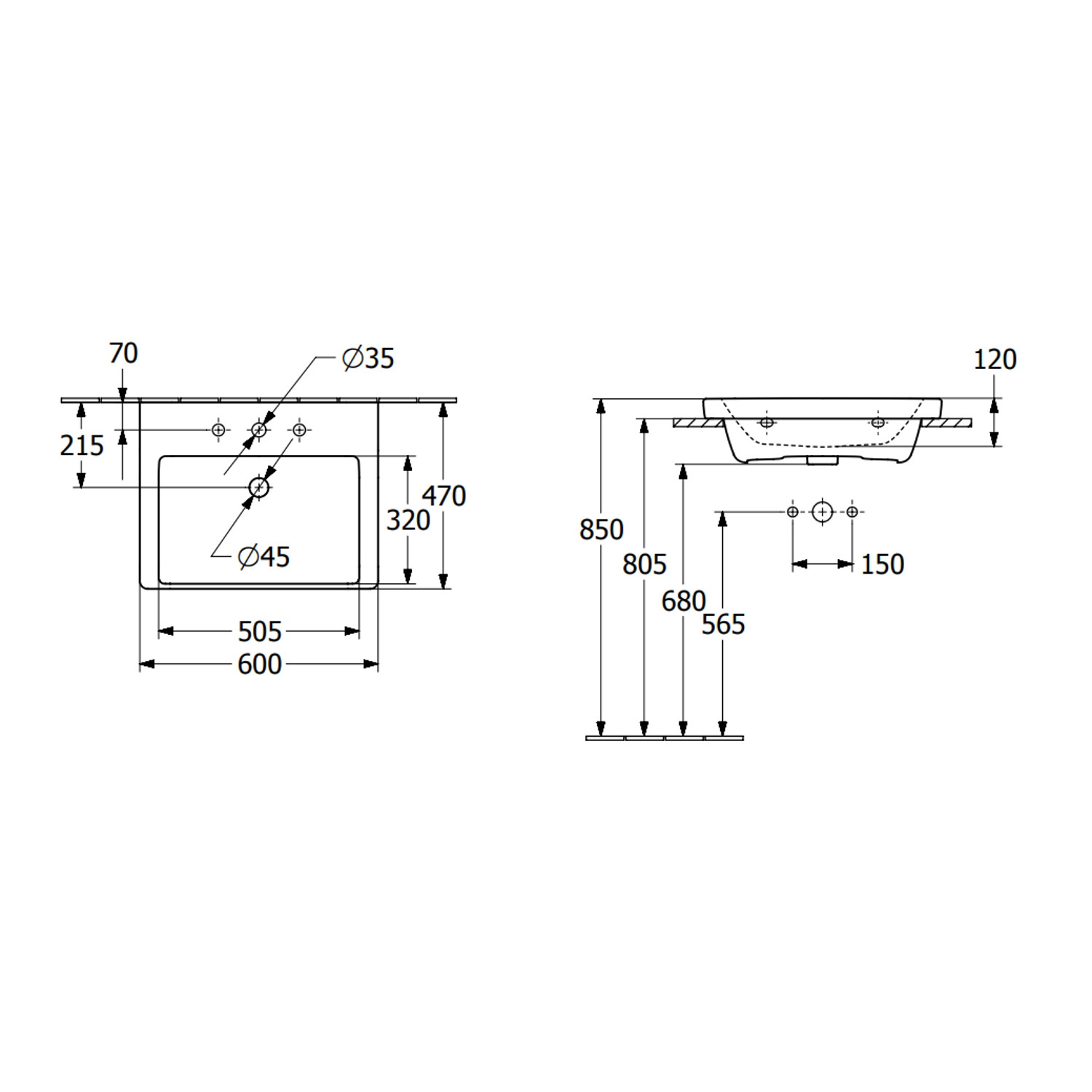 De wastafel is 60 cm breed, 47 cm diep en 16.5 cm hoog en is gemaakt van TitanCeram. Dat is een duurzaam materiaal dat door Villeroy & Boch zelf wordt gecreëerd door verschillende grondstoffen te versmelten. Het is extra stevig waardoor de wasbak lang mee gaat. Op de brede kranenbank past makkelijk een zeepdispenser en de dunne randen en het diepe bekken zorgen ervoor dat er genoeg ruimte is om de handen te wassen.