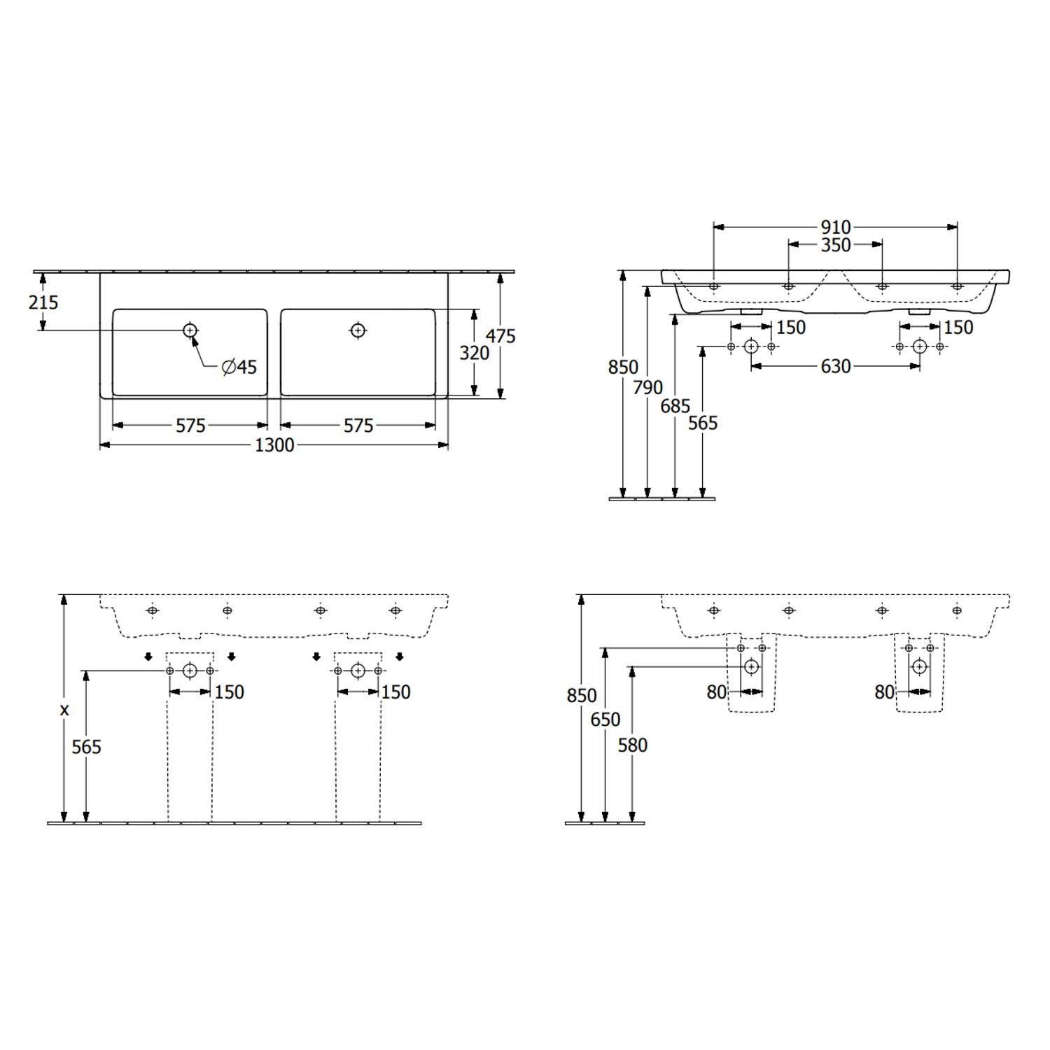 De wastafel komt met 2 sifons, zonder afvoer en heeft een afvoergat met een diameter van 4.6 cm. Hij is gemaakt in de kleur Stone White mat en van TitanCeram, een extra duurzaam en stootbestendig keramiek dat door Villeroy & Boch zelf gecreëert wordt.