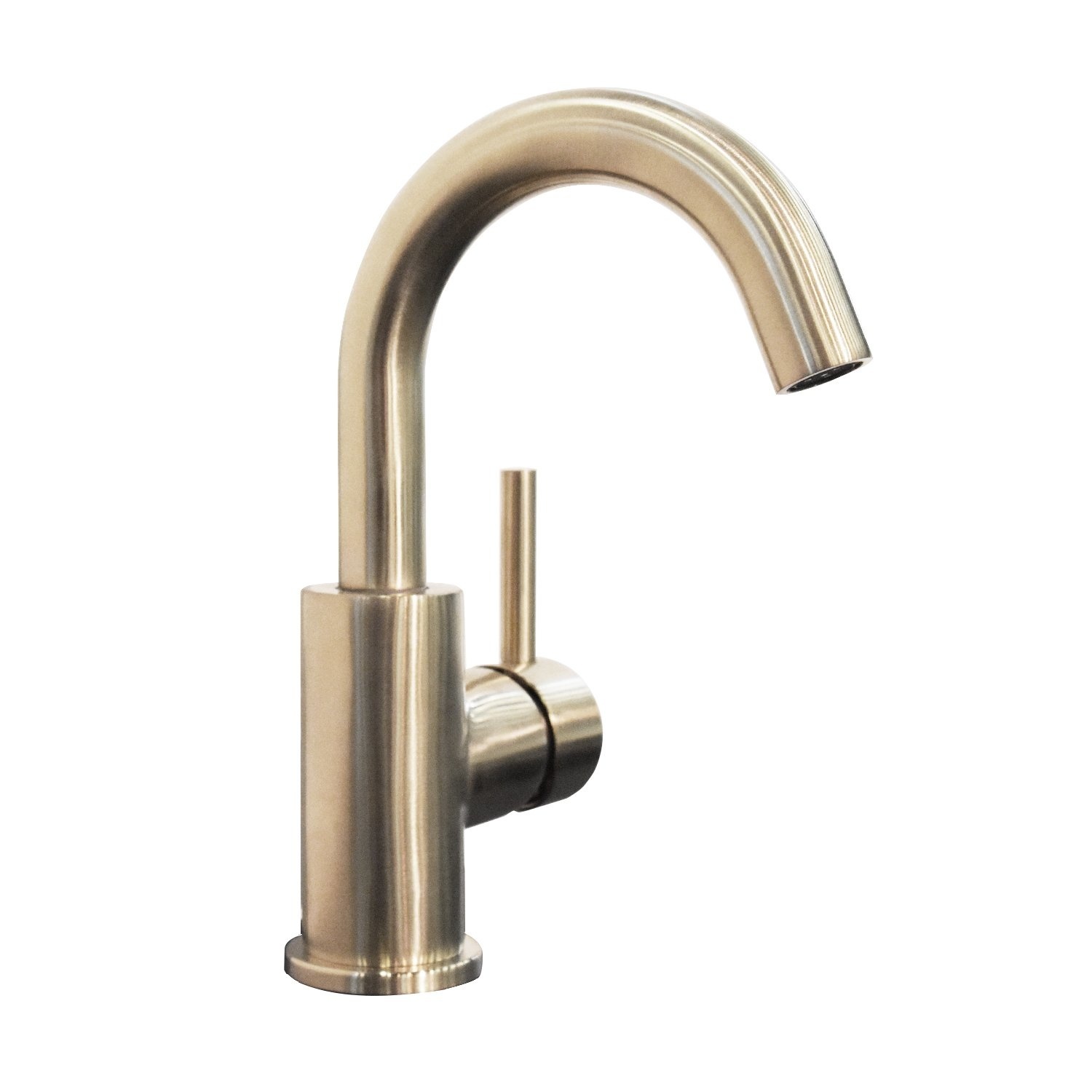 Op zoek naar een opbouw wastafelmengkraan voor in de badkamer? Kies dan voor de Cemal wastafelkraan van ons eigen merk Boss & Wessing! De bijzondere opbouw wastafelkraan is afgewerkt in de kleur geborsteld messing. De kraan beschikt over één hendel waarmee u zowel de temperatuur als de kracht van de waterstraal bepaalt. De kraan is voorzien van een draaibare uitloop, wat het gebruik van deze wastafelmengkraan vergemakkelijkt. De kraan beschikt over een 3/8''-aansluiting en wordt geleverd inclusief waste.