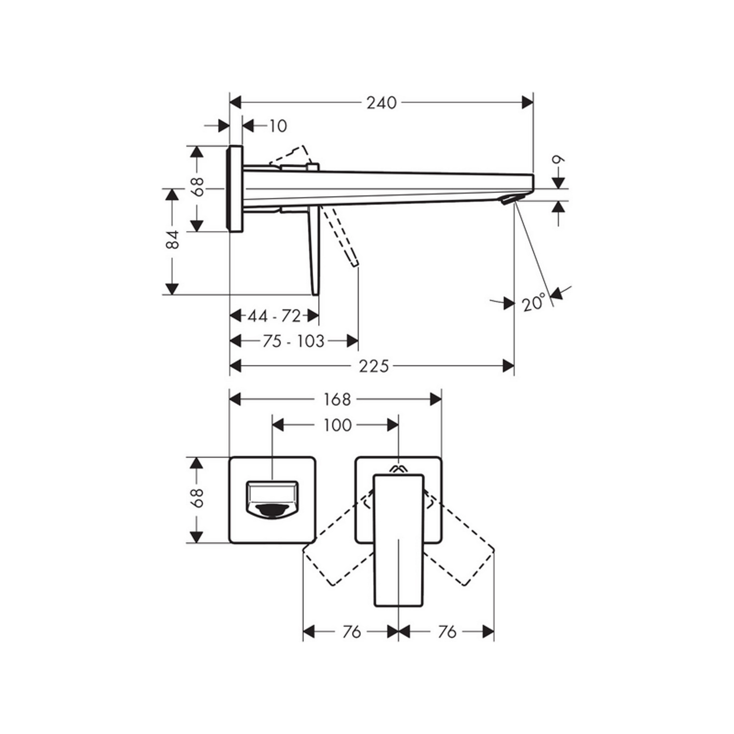 De kraan heeft een uitloop van 22.5 cm en heeft 5 jaar garantie.