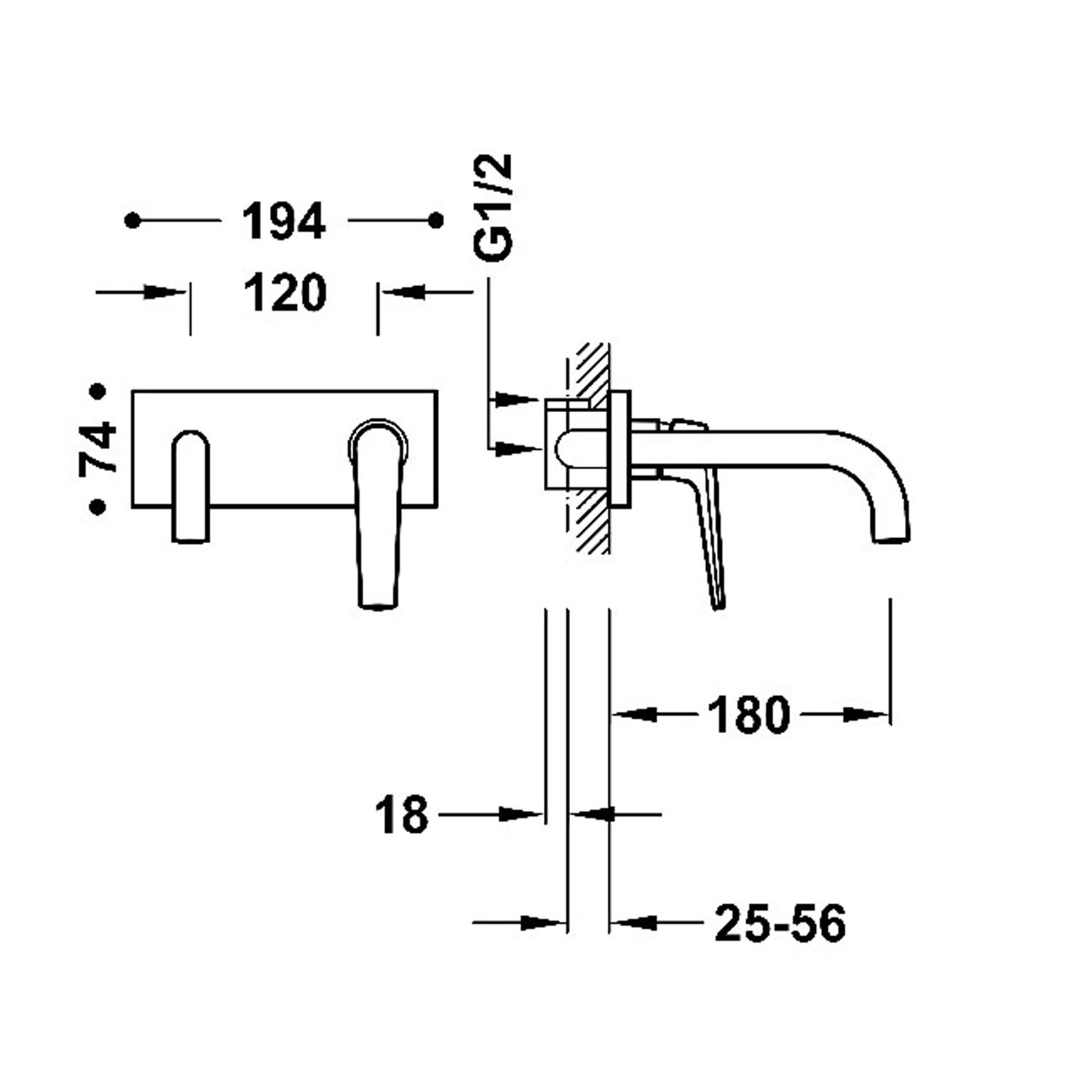 De afmetingen van deze Wastafelkraan inbouw zijn: 18 cm lang en de bediensngsplaat heeft een lengte van 7.4 cm en een breedte van 19.4 cm.