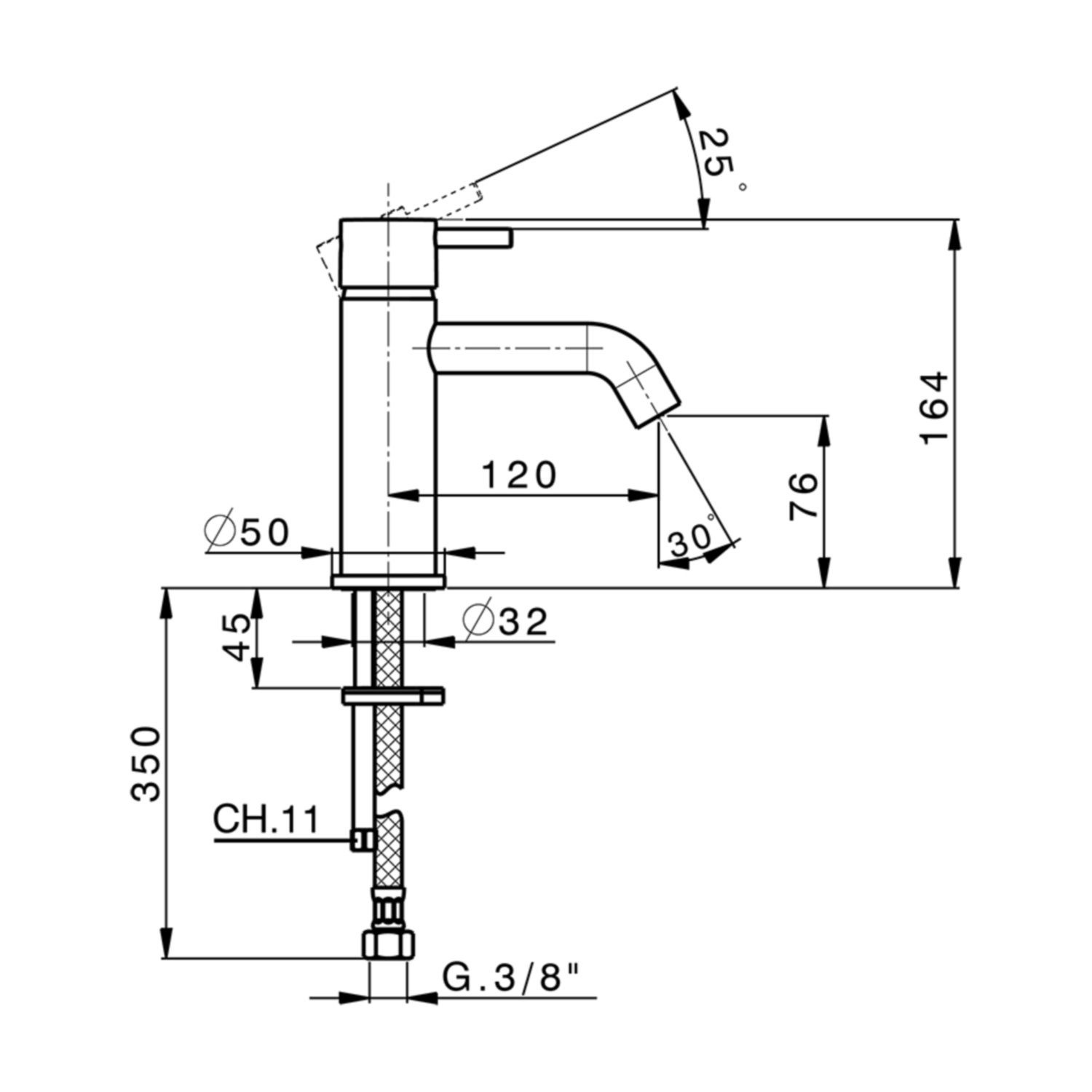 Dit model kraan heeft een standaard uitloop, dit maakt de wastafel eenvoudig ingebruik in de badkamer. De bediening bestaat uit één hendel. Hiermee wordt warm en koud water gemengd, en de hardheid van de straal van het water bepaald.