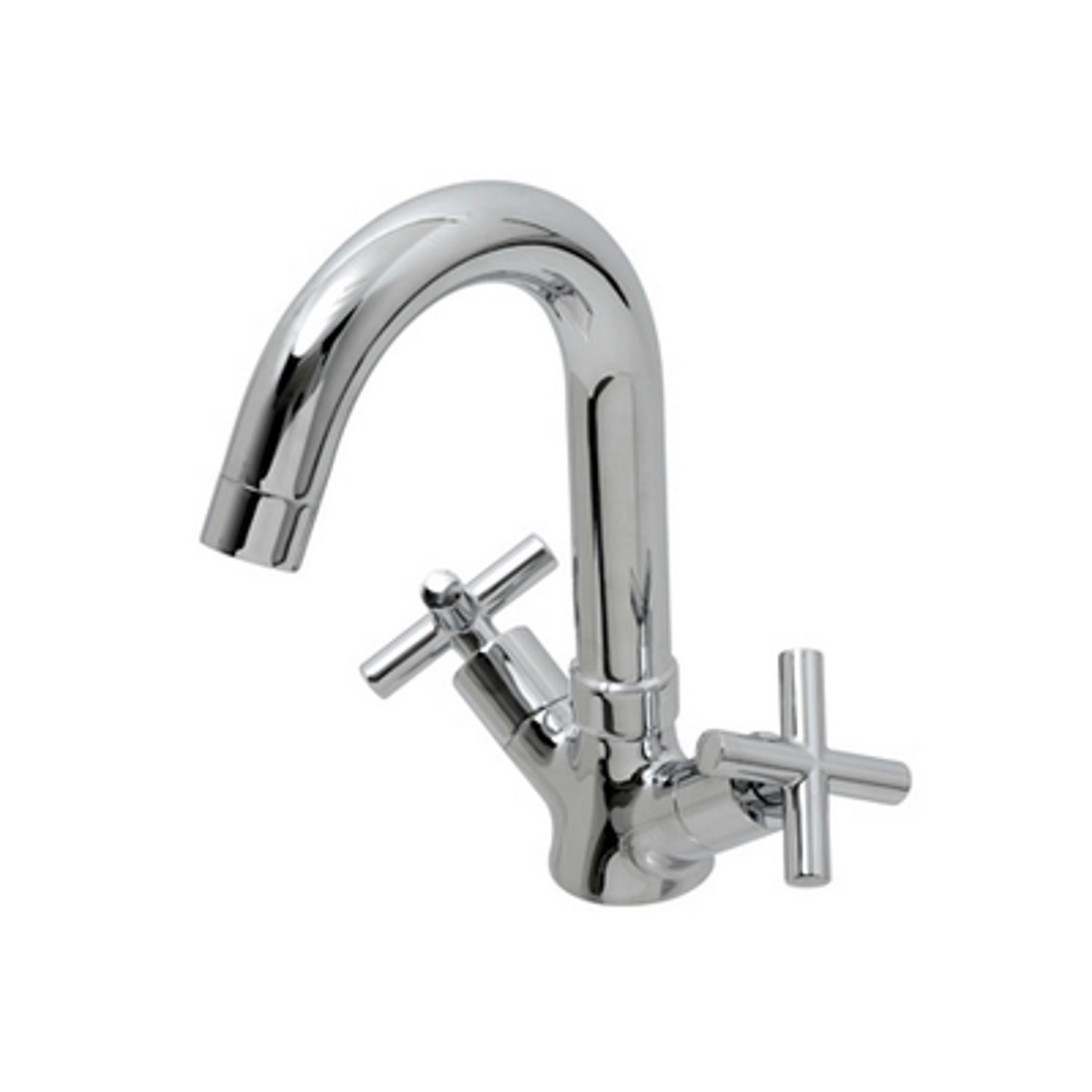 De kraan heeft kruisgrepen, waarmee u de temperatuur instelt naar wens. De kraan is van messing in chroom kleur.