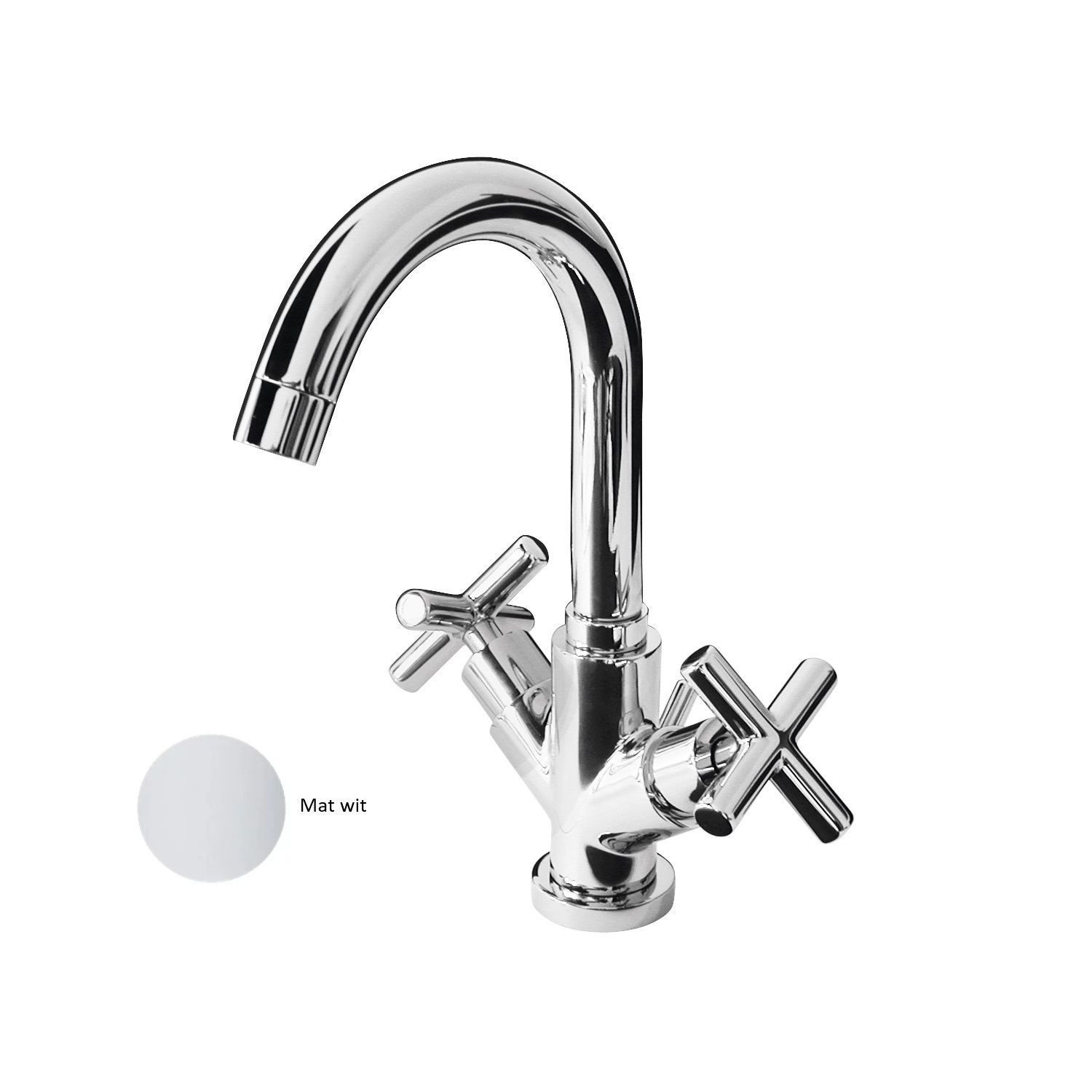 De Giulini wastafelkraan van het merk Sanimex heeft een mat witte afwerking en beschikt over twee kruisgrepen waarmee u de temperatuur van het water eenvoudig kunt regelen. De kraan bevat ook een draaibare uitloop. De draaibare uitloop maakt het mogelijk om een dubbele vaat met water te vullen. Verder wordt de kraan inclusief pop-up geleverd, dit wordt ook wel een klikwaste genoemd. De waste bestaat uit een hefboom-mechanisme dat de waterstop omhoog en omlaag beweegt. Een losse stop is hierdoor niet meer nodig.