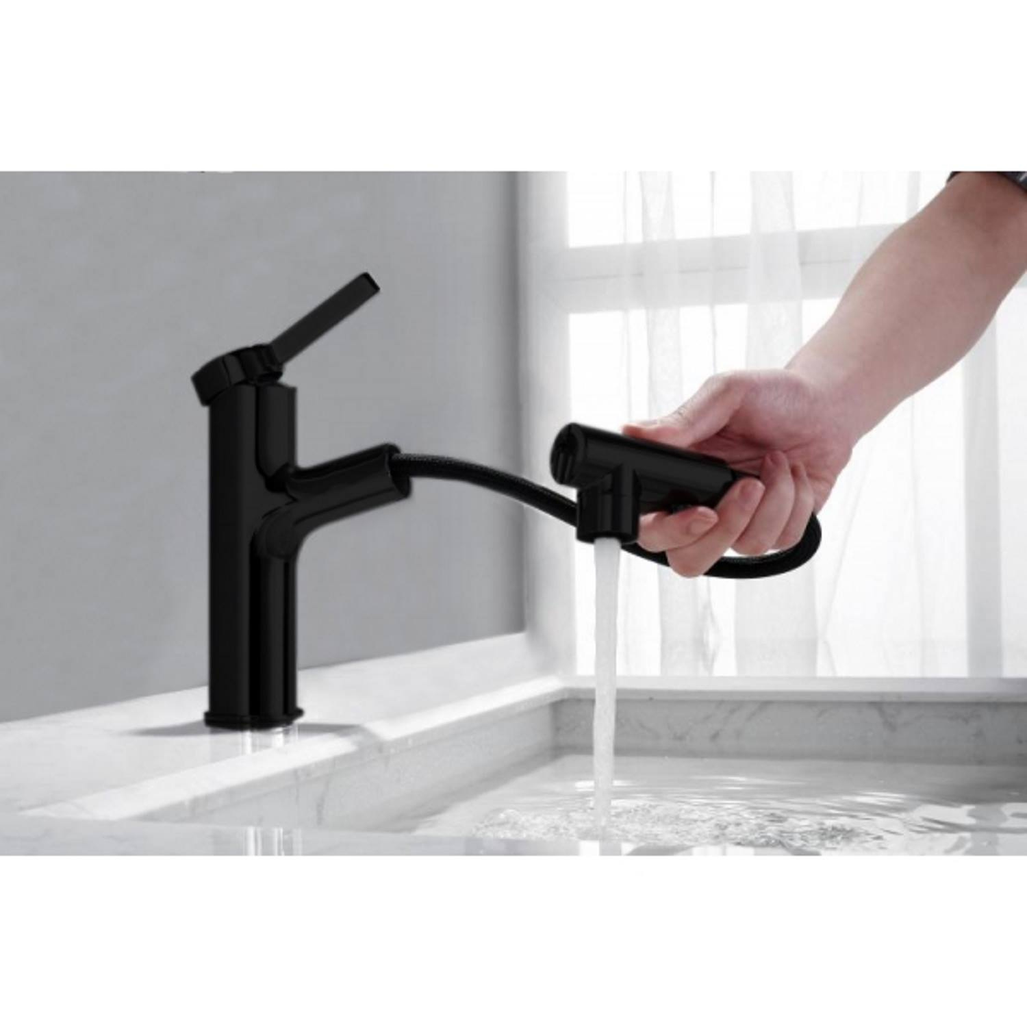 Mooi afgewerkt Wastafelmengkraan in het mat zwart! Met extra uittrekbare sproeiuitloop.