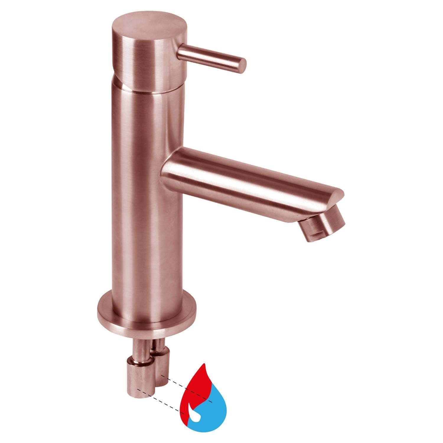 Deze stoere en compacte wastafel kraan van Differnz past met zijn industriele uiterlijk perfect in de badkamers van nu! Deze mengkraan is 13.5 cm hoog en 10.8 cm diep. Ondank de compacte afmetingen is de kraan gemakkelijk in gebruik. De kraan is goed te combineren met de andere artikelen van Differnz. Kies bijvoorbeeld voor een koperen sifon en afvoer om uw wastafel af te maken.