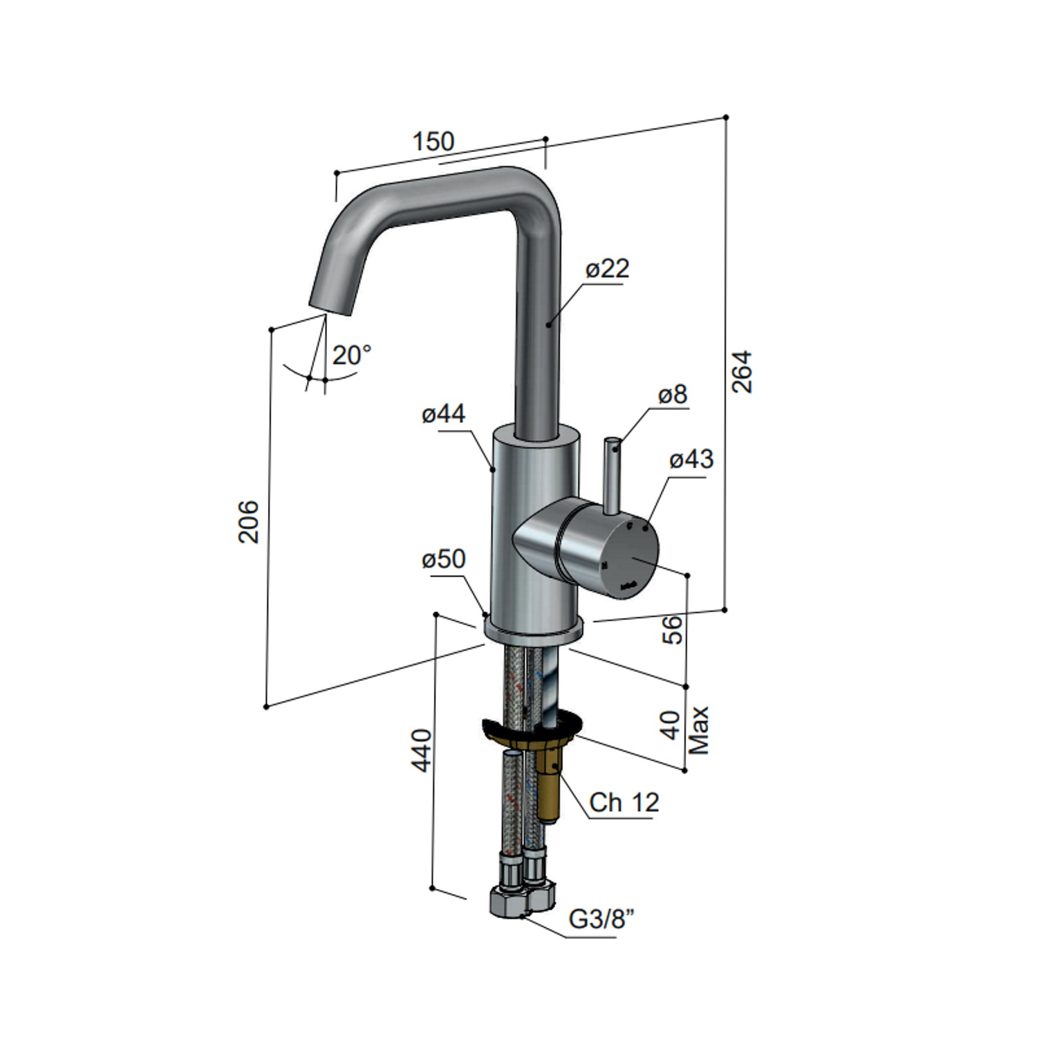 De kraan heeft een draadaansluiting van 3/8Inch en heeft een draaibare uitloop voor extra gebruiksgemak. Tot slot heeft u ook nog eens 10 jaar garantie dus gegarandeerd lang plezier.