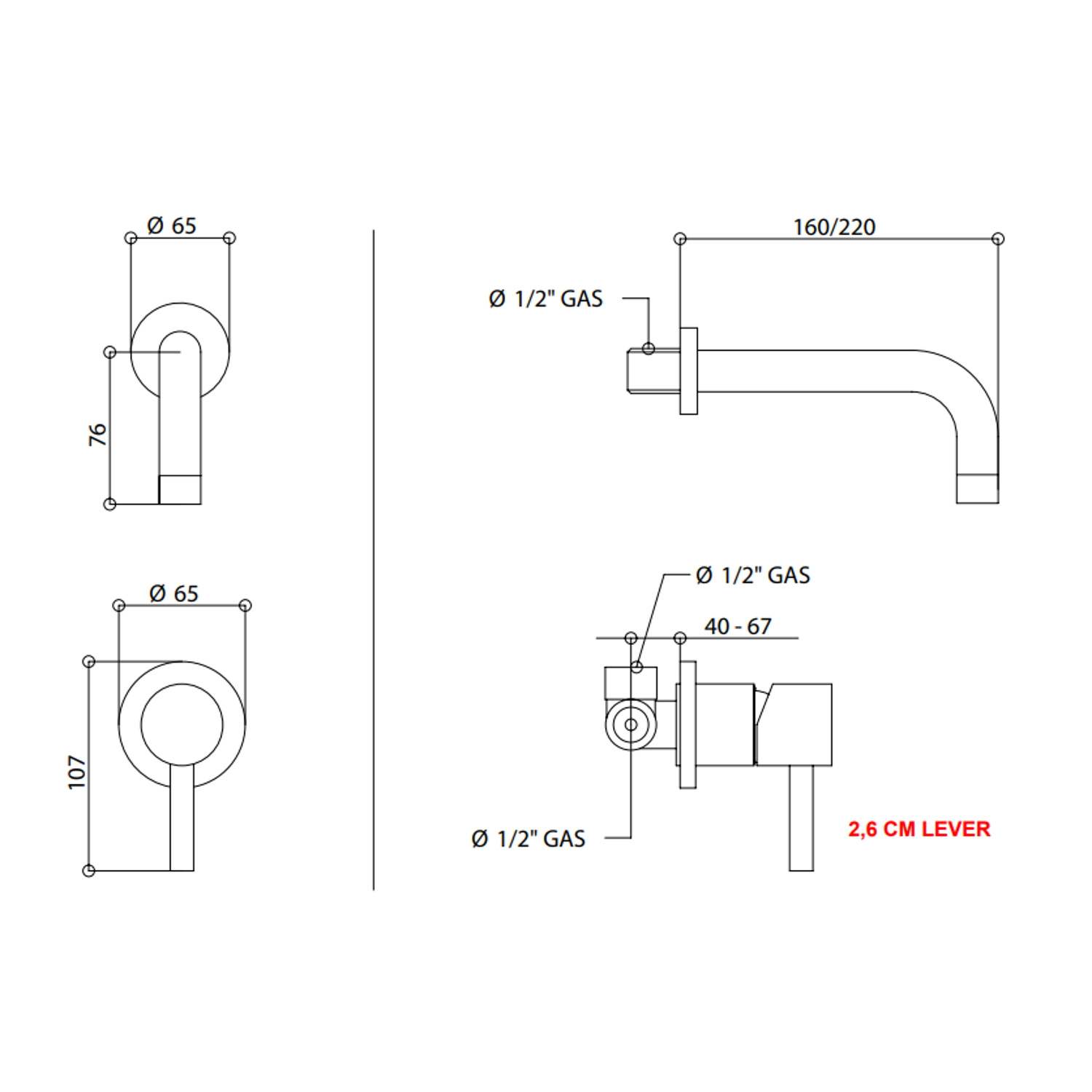 Deze kraan heeft een uitloop van 16 cm lang. De hoogte is 7,6 cm. De twee rozetten hebben een diameter van 6,5 cm en de hendel is in totaal 10,7 cm lang. U bedient de kraan door de hendel te bewegen. Zo draait u de kraan open en dicht en stelt u de gewenste temperatuur in.