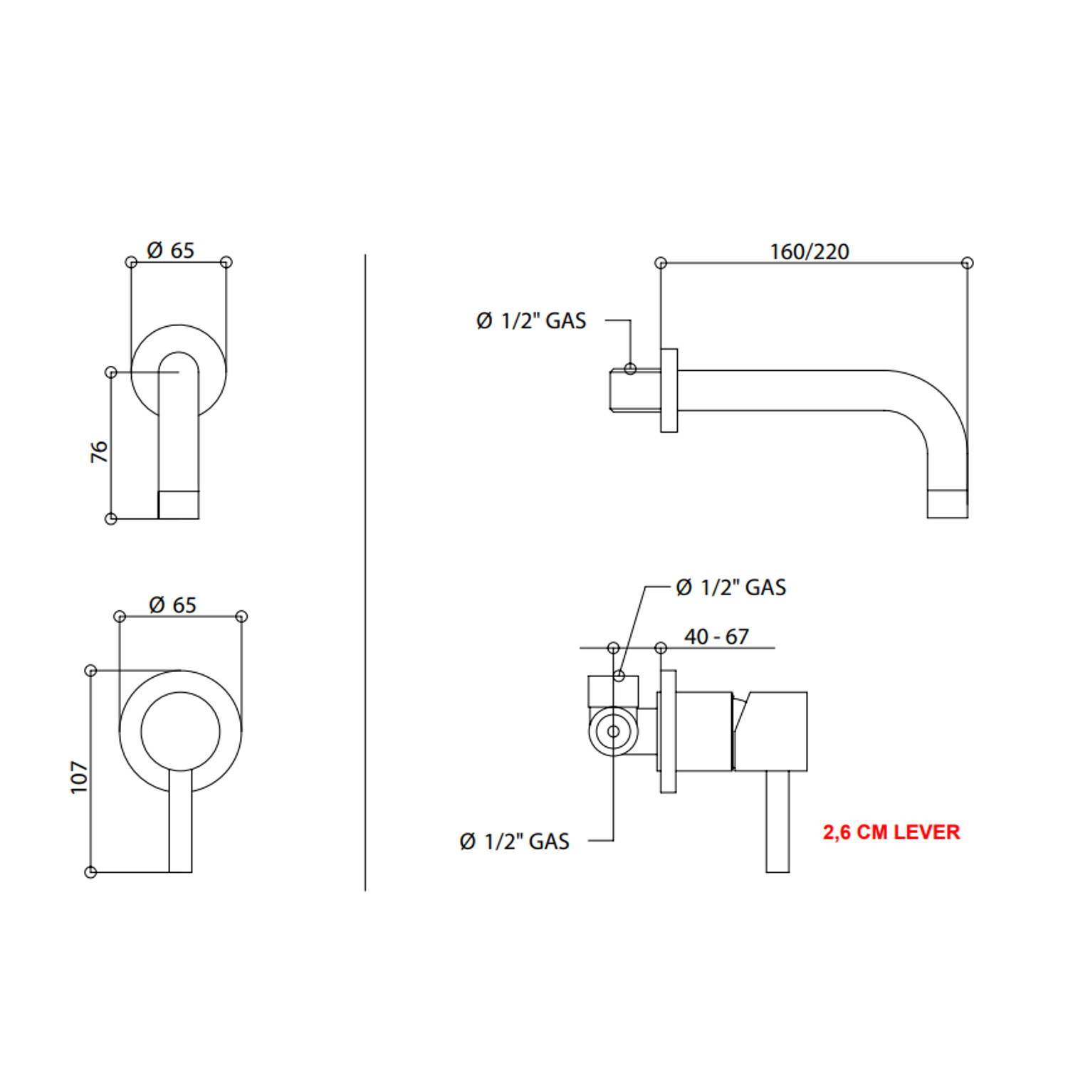 Deze kraan heeft een uitloop van 22 cm lang. De hoogte is 7,6 cm. De twee rozetten hebben een diameter van 6,5 cm en de hendel is in totaal 10,7 cm lang. U bedient de kraan door de hendel te bewegen. Zo draait u de kraan open en dicht en stelt u de gewenste temperatuur in.