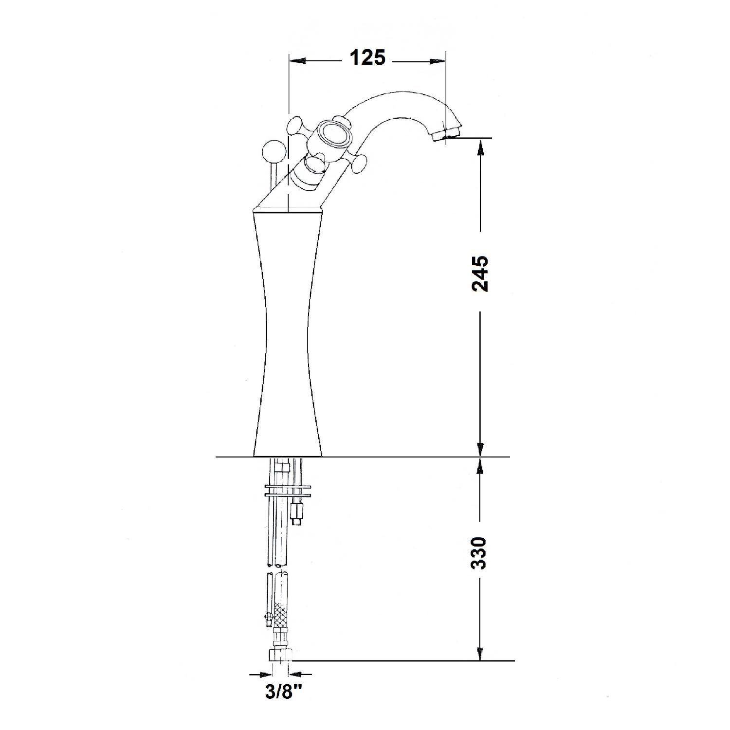De uitloop heeft een hoogte van 24.5 cm en een diepte van 12.5 cm. De mengkraan is voorzien van een 3/8 inch aansluiting.