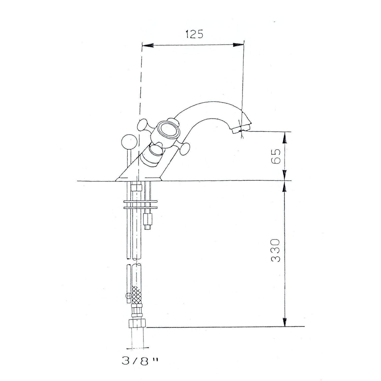 De uitloop heeft een hoogte van 6.5 cm en een diepte van 12.5 cm. De mengkraan is voorzien van een 3/8 inch aansluiting.