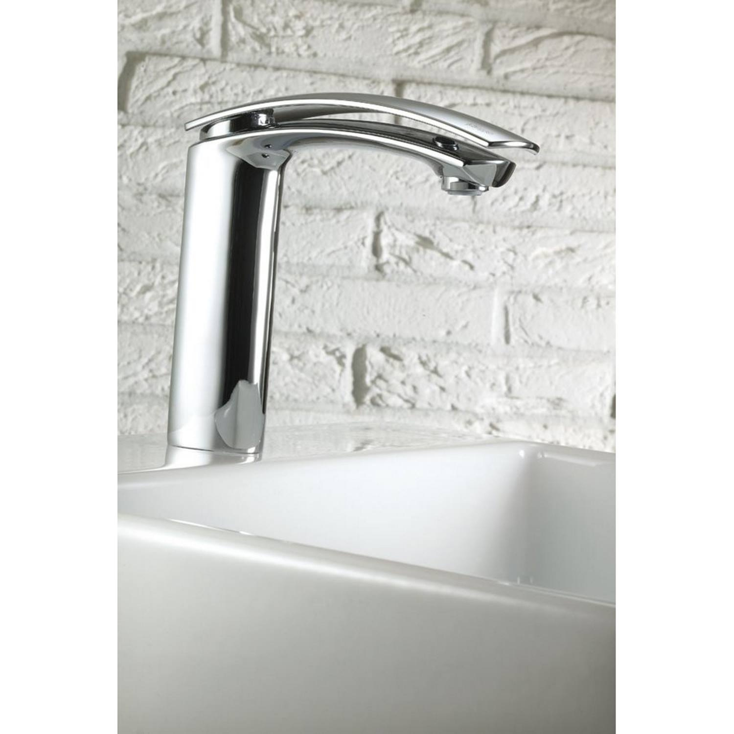 De Flo wastafelmengkraan van het merk Sapho heeft een stijlvol design en is geschikt voor elke moderne badkamer. De wastafelkraan is voorzien van een mengfunctie: dat houdt in dat u met de hendel warm en heet water kunt mengen tot de juiste temperatuur. U heeft geen 2 losse knoppen meer waar u mee moet stoeien om de juiste temperatuur te krijgen. De kraan heeft de hoogte van 18.5 cm. Ook heeft de kraan een keramisch binnenwerk, dit houdt de hendel jarenlang soepel in zijn beweging om water door te laten en de kraan goed te sluiten. De praktische kraan is afgewerkt in een chromen kleur.