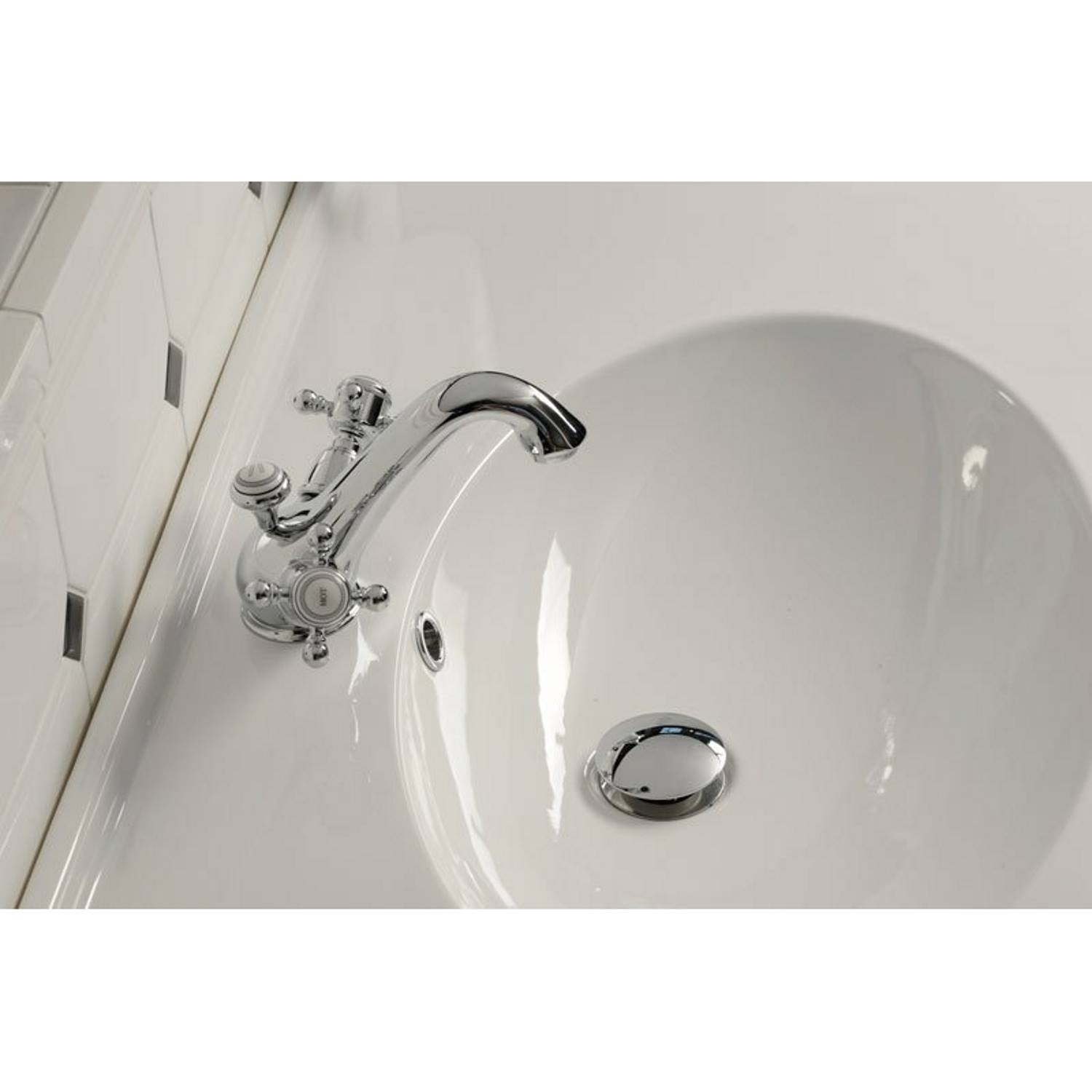 De wastafelkraan wordt geleverd inclusief bijpassende pop-up waste.