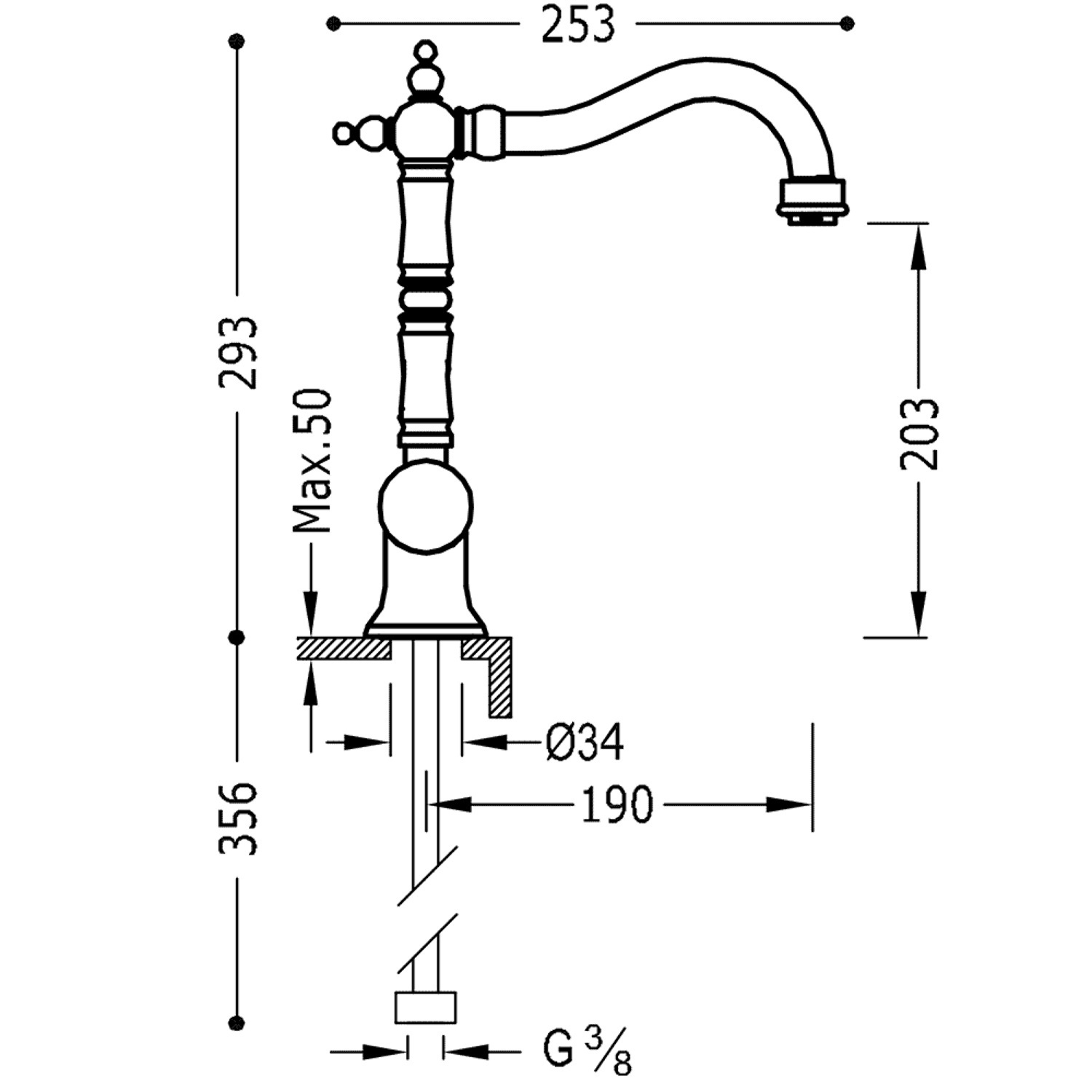 Deze wastafelmengkraan van de serie 'Clasic' van Tres heeft, zoals de serienaam al zegt een klassiek uiterlijk. De kraan is elegant en speels door zijn gebogen uitloop en wtte hendel. Hij heeft een hoogte van 29,3 cm en een diepte van 25,3 cm. De uitloop is 20,3 cm hoog en 19 cm lang.
