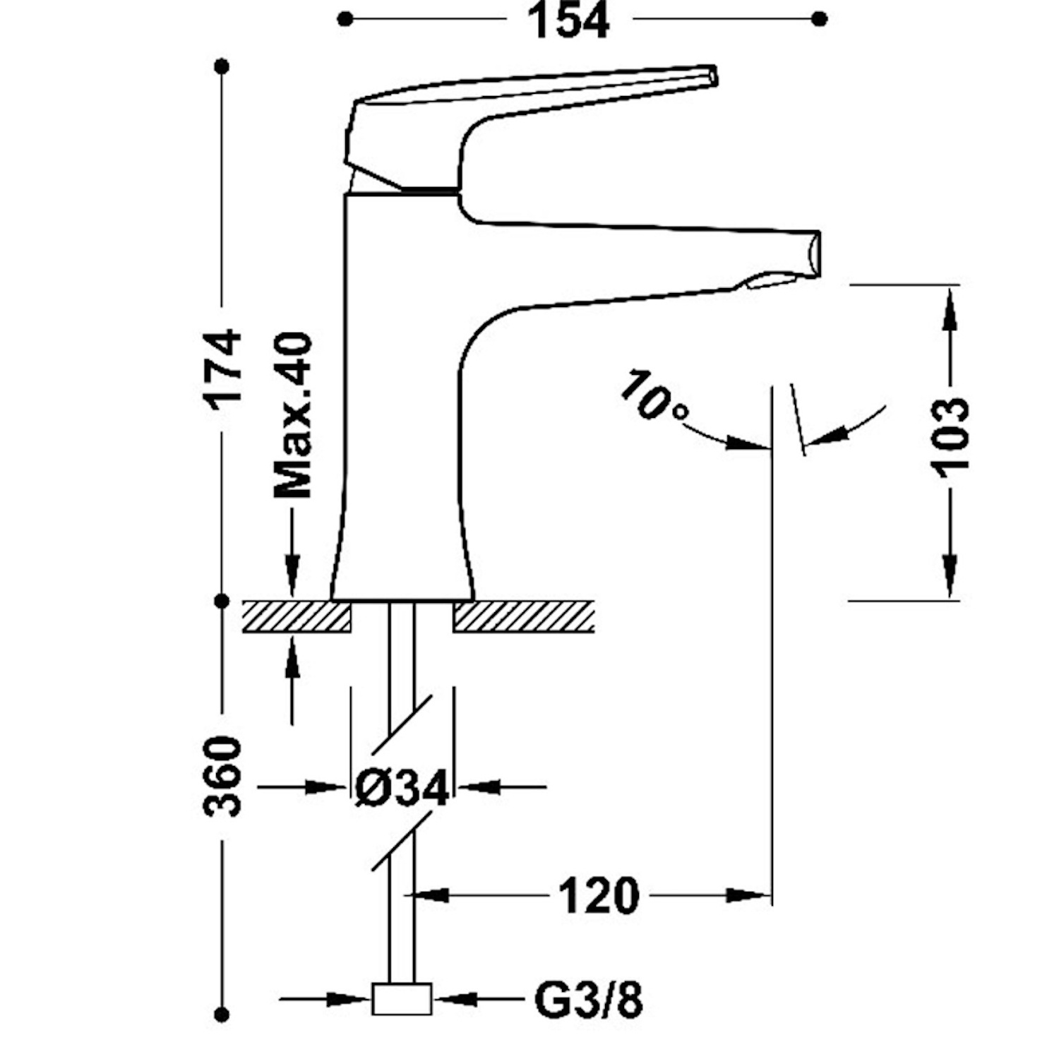 De afmetingen van deze wastafelmengkraan zijn: 17.4 cm lang en 15.4 cm breed. De hoogte van de kraan is 10.3 cm en de kraan loopt onder de wastafel nog 18.6 cm door.