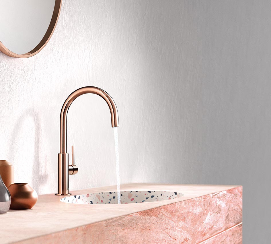 De kraan heeft een keramisch binnenwerk. Dit houdt de hendel jarenlang soepel en zorgt ervoor dat uw kraan lang meegaat. Deze praktische kraan is makkelijk te monteren. Hij is van messing in de kleur rosé goud.
