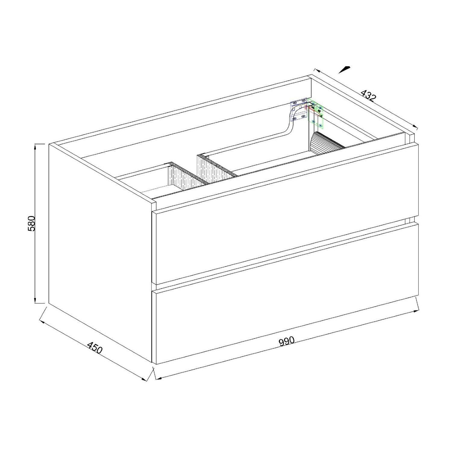 De Maia wastafelmeubel van het merk Boss & Wessing is een prachtige aanwinst voor in uw badkamer. De onderkast heeft een stijlvol design en een fraaie mat zwarte afwerking. De onderkast bevat twee softclose lades waarin uw toiletartikel bij de hand en netjes kan opbergen. Het softclose systeem van de lades zorgt er voor dat de lades geleidelijk en geruisloos dichtvallen zonder uw kast te beschadigen. De bijpassende topblad kunt u onderaan de pagina eenvoudig bijbestellen. De onderkast heeft een breedte van 99 cm, een hoogte van 58 cm en een diepte van 45 cm.