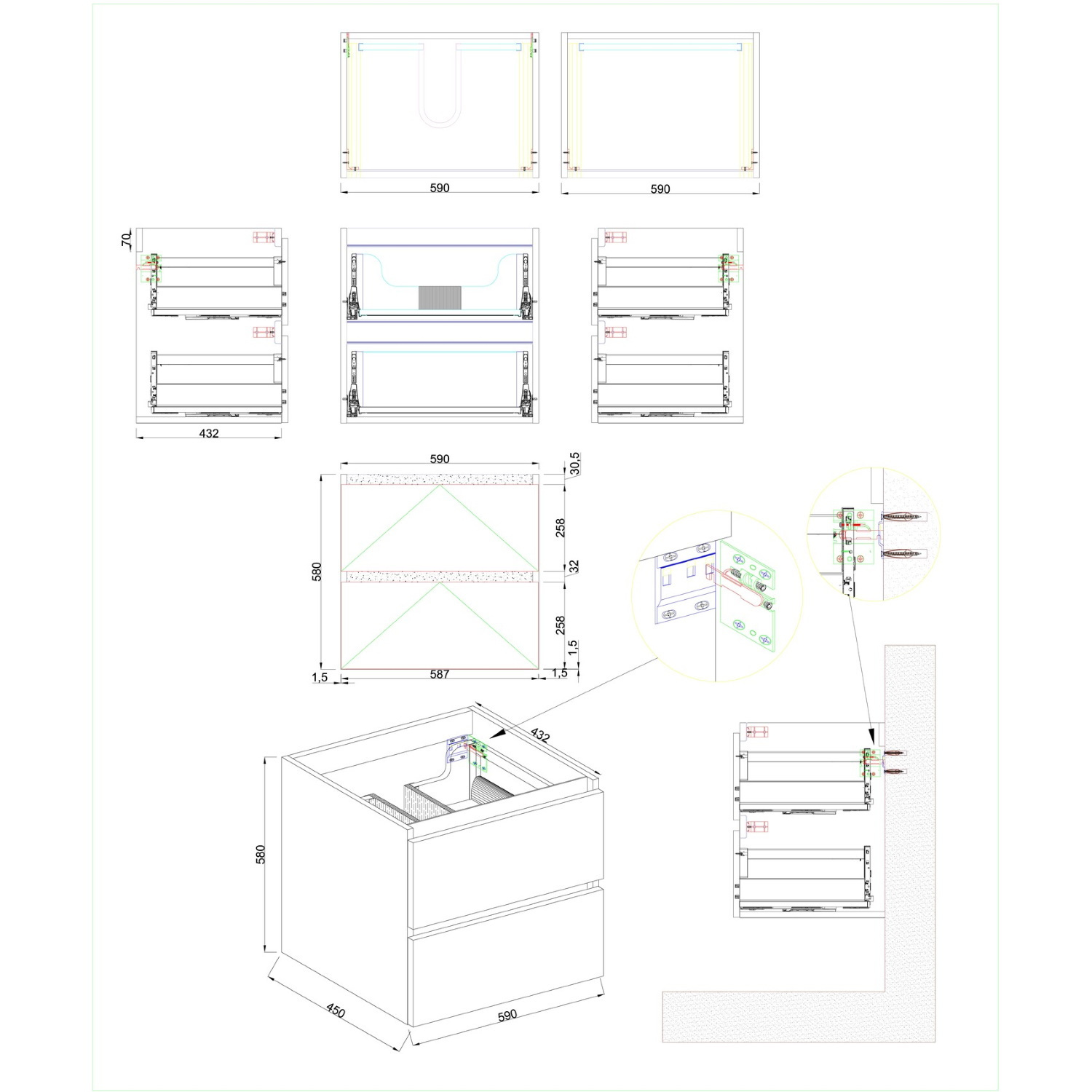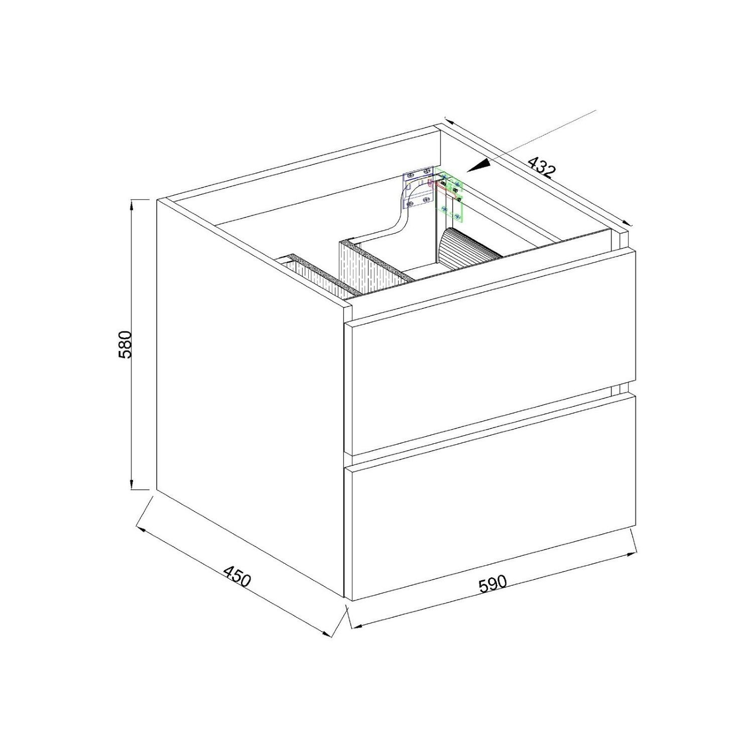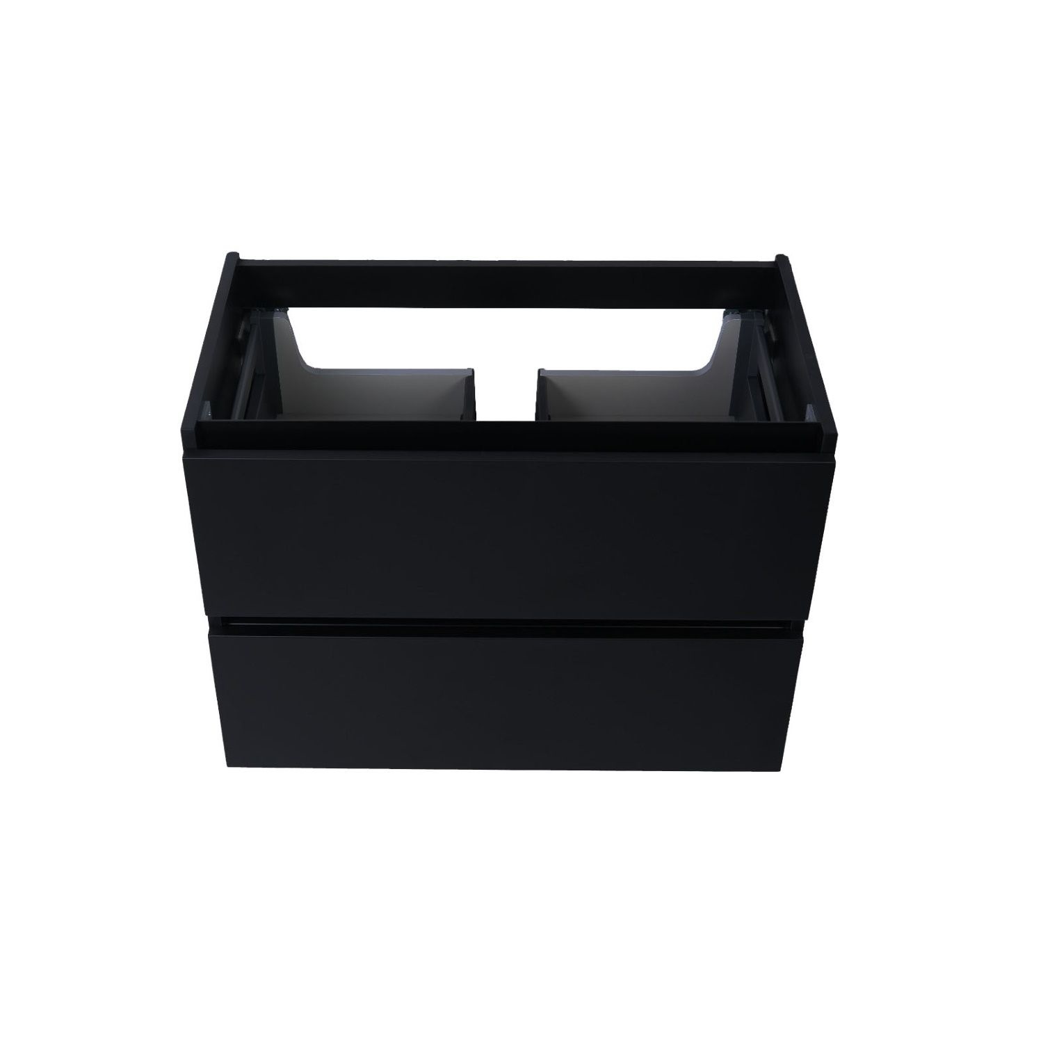 De Maia wastafelmeubel van het merk Boss & Wessing is een prachtige aanwinst voor in uw badkamer. De onderkast heeft een stijlvol design en een fraaie mat zwarte afwerking. De onderkast bevat twee softclose lades waarin uw toiletartikel bij de hand en netjes kan opbergen. Het softclose systeem van de lades zorgt er voor dat de lades geleidelijk en geruisloos dichtvallen zonder uw kast te beschadigen. De bijpassende topblad kunt u onderaan de pagina eenvoudig bijbestellen. De onderkast heeft een breedte van 59 cm, een hoogte van 58 cm en een diepte van 45 cm.