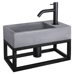 Specificaties Fonteinset Differnz Force Beton en Handoekrek 40x22x9 cm Donker Grijs Met Rechte Kraan...