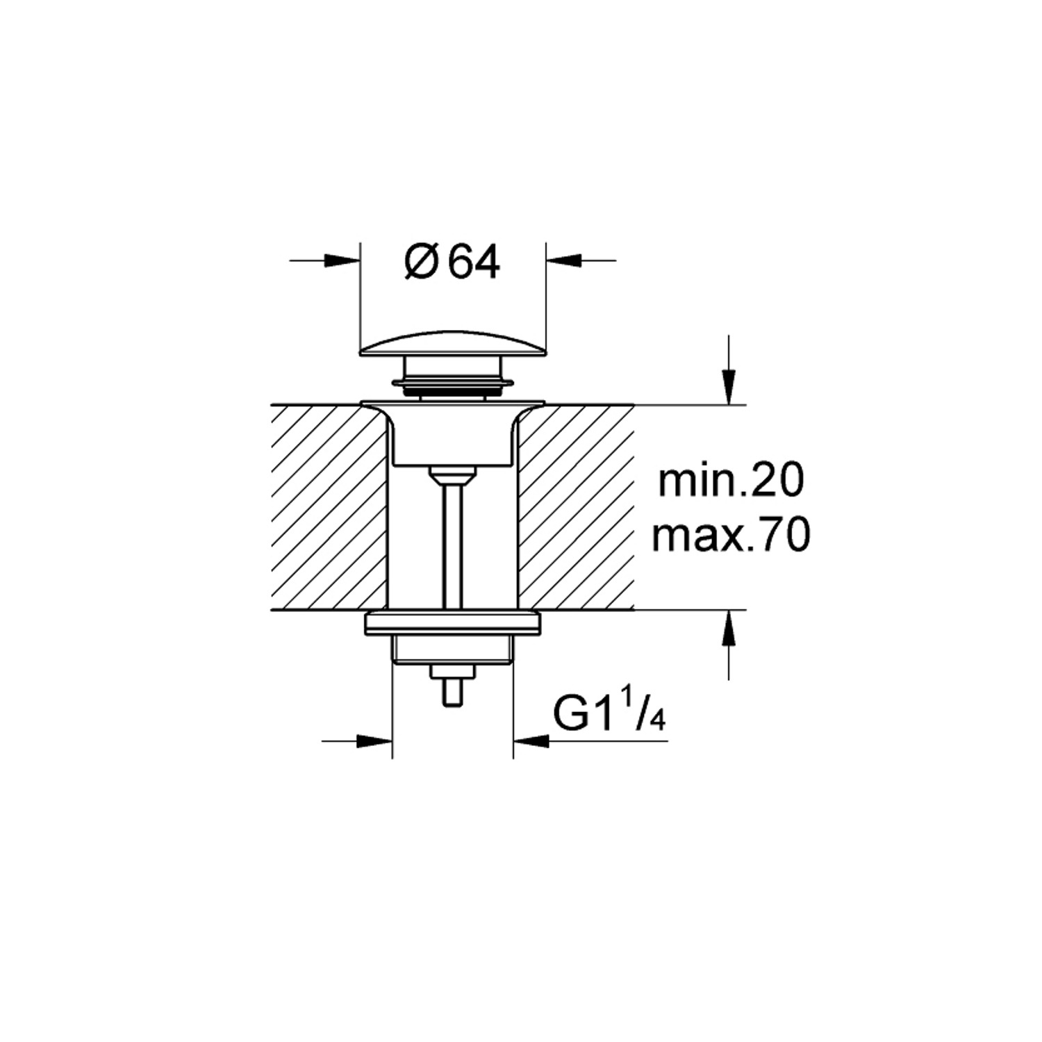 De waste is geshikt voor een afvoergat van 6.4 cm en kan geplaatst worden in een afvoergat van minimaal 2 cm diep en maximaal 7 cm diep. De draadaansluit is 1 1/4". De push-open waste is uitgevoerd in de kleur Supersteel. Dit is een RVS look.