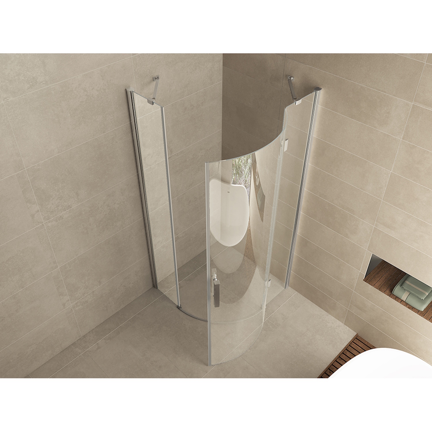Rechts scharnierend en 200cm hoog inclusief 2 chroom wand profielen welke 20mm aan beide zijden verstelbaar zijn.