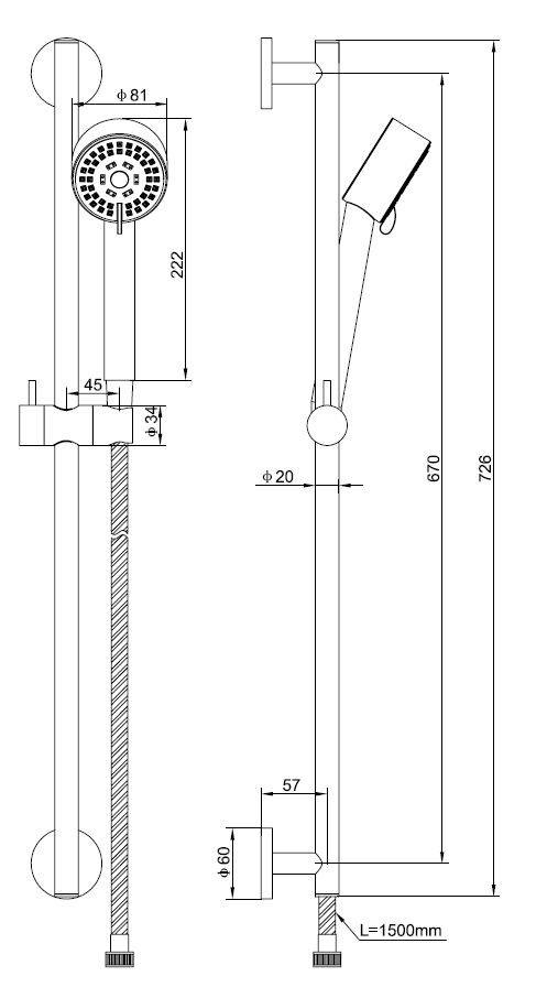 Wiesbaden Cadans luxe glijstangset compleet geb.staal