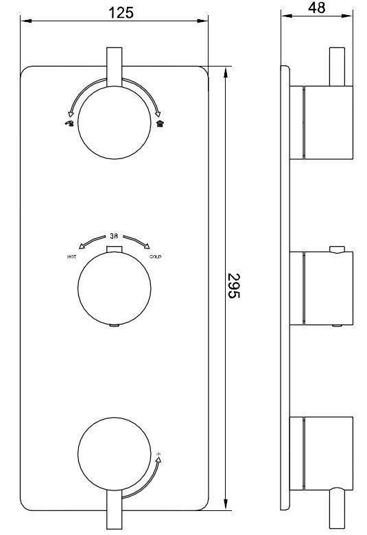 Afbouwdeel voor het inbouwdeel douchethermostaat. (apart te bestellen), bestaande uit thermostaatknop, omstelknop(pen) en bodemplaat.