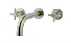 Cross 2-knops wastafel-afbouwdeel, Te combineren met inbouwdeel 29.3100, inclusief 2 bedieningsknoppen en een uitloop van 20cm, kleur: geborsteld staal , , LET OP: Het inbouwdeel 29.3100 dient apart besteld te worden!,