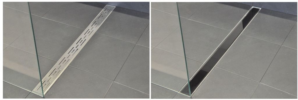 Vervang het standaard RVS rooster door dit stijlvol glasrooster zwart, gemonteerd op een RVS frame. Maat 700x70 tbv RVS 3e Generatie douchegoot, zonder flens, met flens, en muurflens!