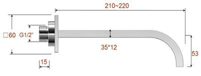 Inbouw-baduitloop vierkant 22cm 1/2" chroom