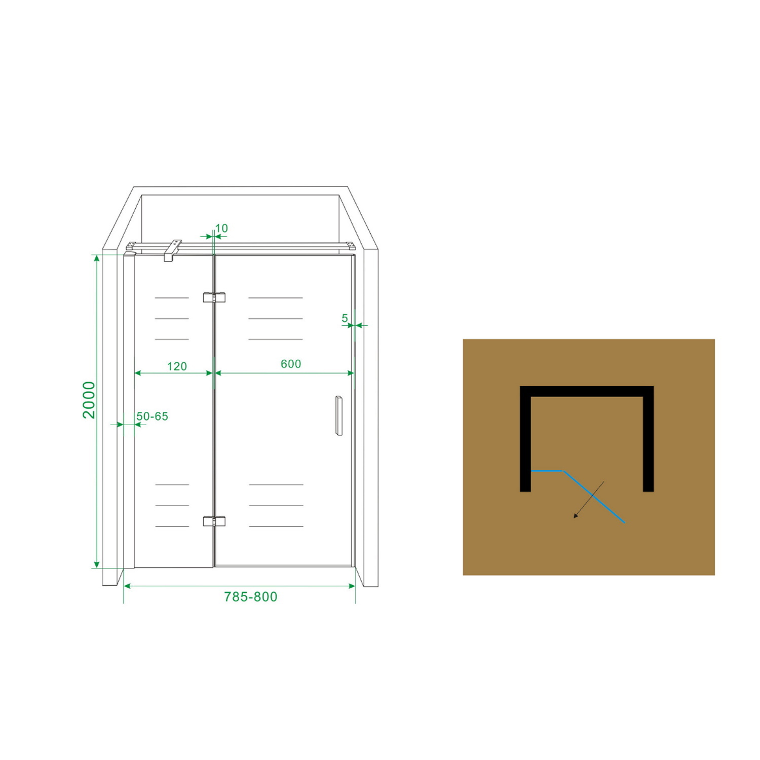 Nis swingdeur + vast paneel 80 (60-20) x 200 NANO