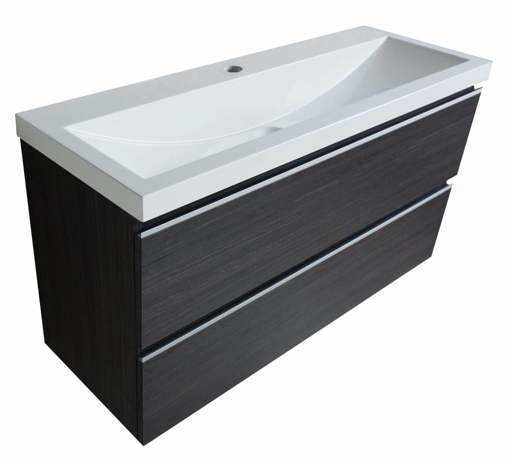 Keuze uit 3 soorten wastafels (zonder- , één- of twee kraangaten) Kleur: houtnerf grijs