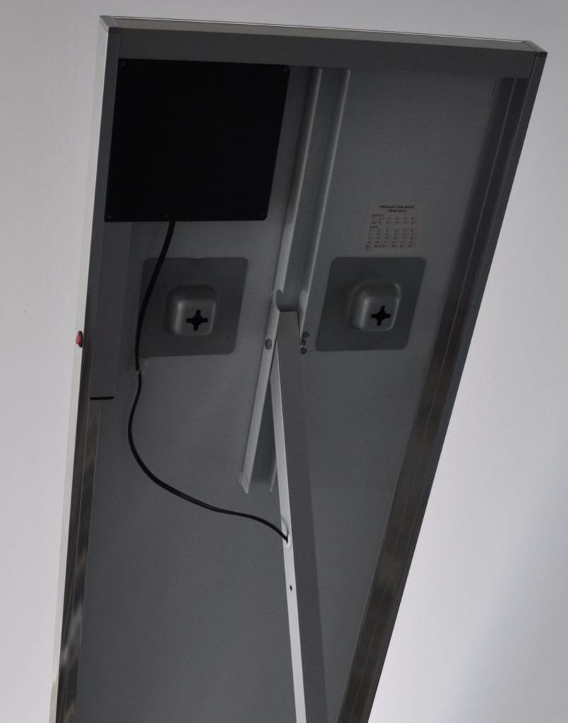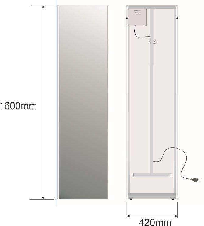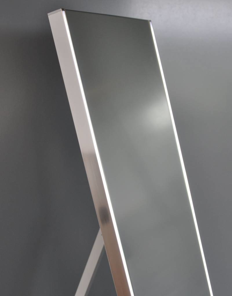 WB passpiegel 1600x420 met led verlichting, Zowel staand als hangend te gebruiken, Met schakelaar, Met wegklapbare vloersteun,